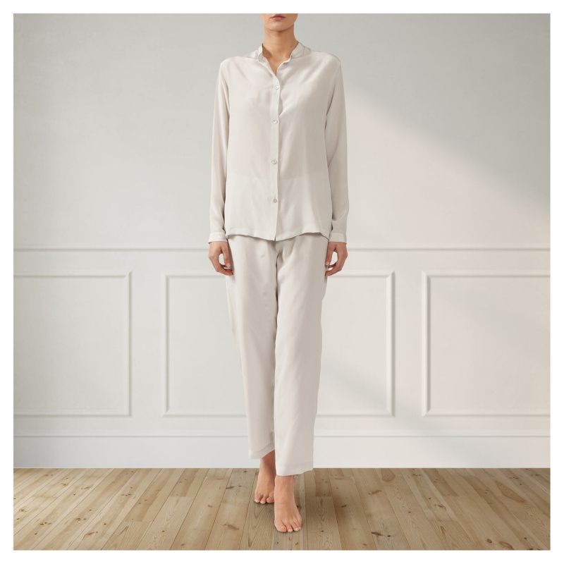 Элегантный пижамный комплект Pristine из нежного натурального шёлка обеспечит комфорт во время отдыха и сна. Шелковые изделия отличаются долговечностью, отличной терморегуляцией и не вызывают аллергии.