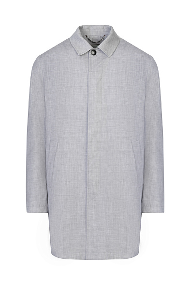 Короткий плащ с высокой шлицей из гладкого полиэстера идеально завершит и повседневный, и более строгий образ. Модель дополнена съемным капюшоном на кулиске и прорезными карманами. Застегивается на скрытые под планкой пуговицы.
