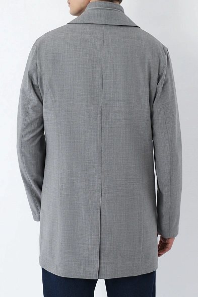 Однобортный плащ из тонкой шерсти гармонично дополнит повседневный образ. Модель с высокой шлицей дополнена подкладом и двумя парами внешних и внутренних карманов. Изделие застегивается на пуговицы, скрытые под планкой.