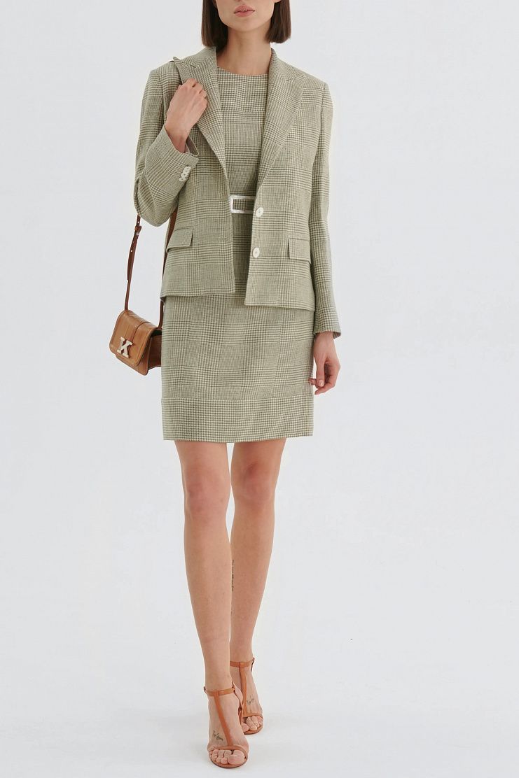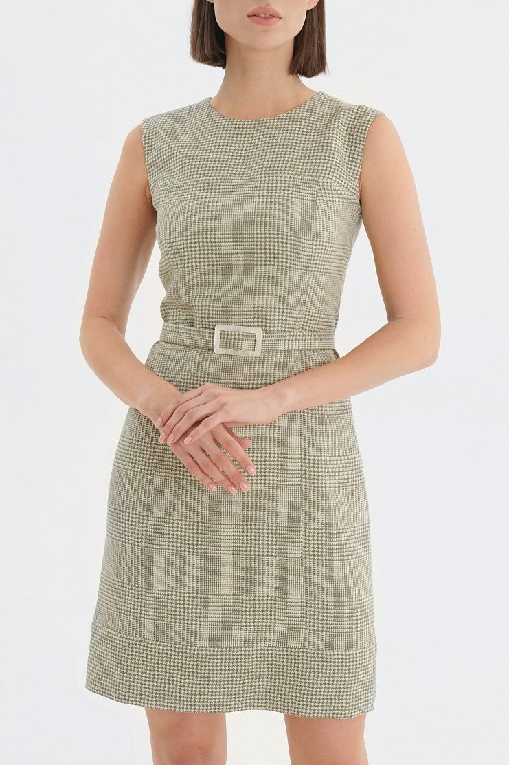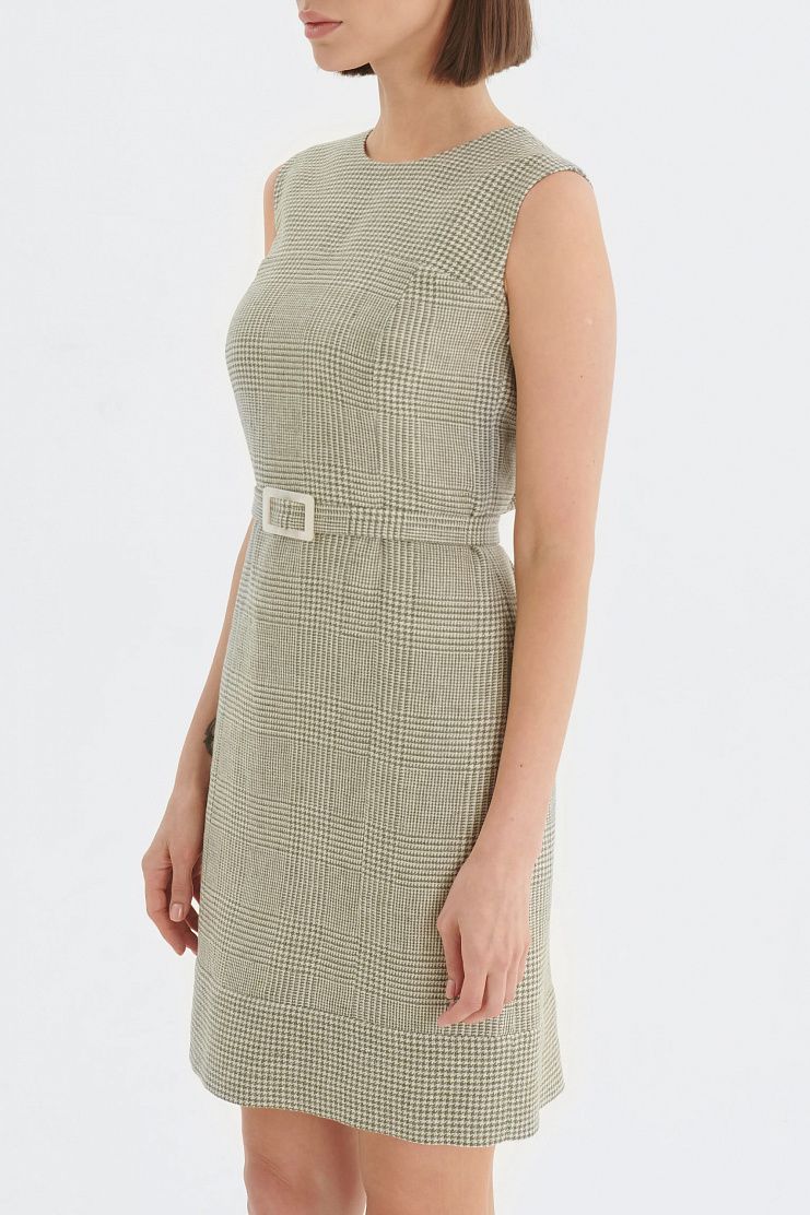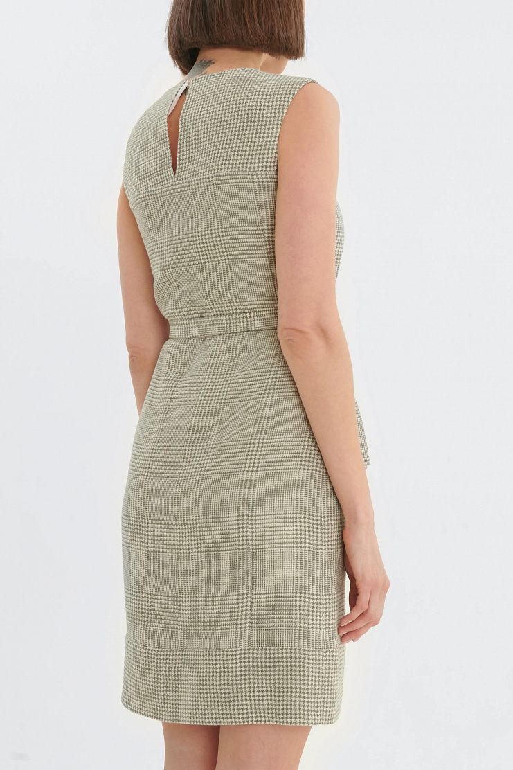 Платье в клетку "гусиная лапка". Приталенная модель со съемным регулируемым поясом и застежкой на пуговицу сзади.