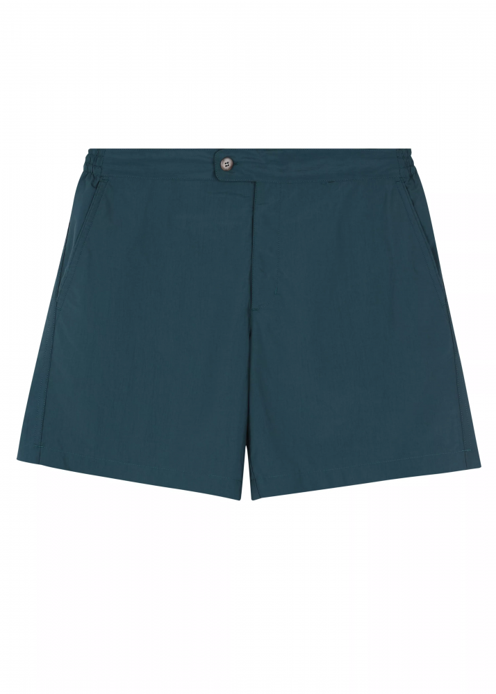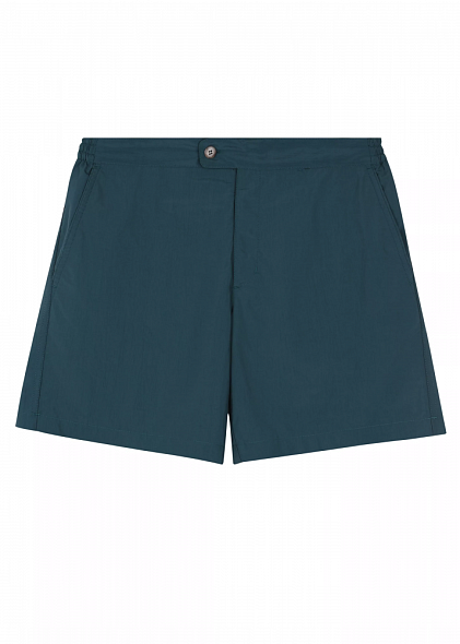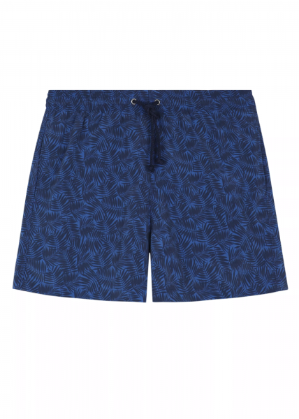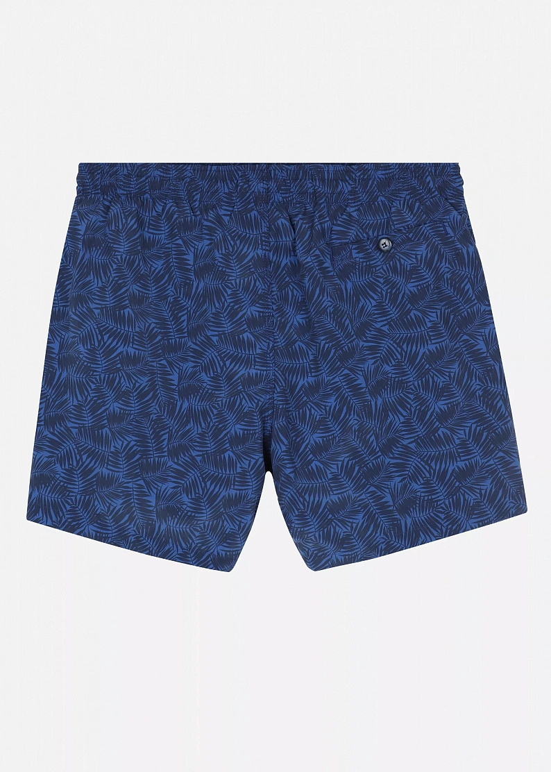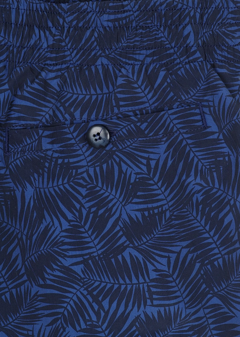 Плавки-шорты с принтом имеют эластичный пояс на кулиске, боковые карманы и задний карман на липучке.
