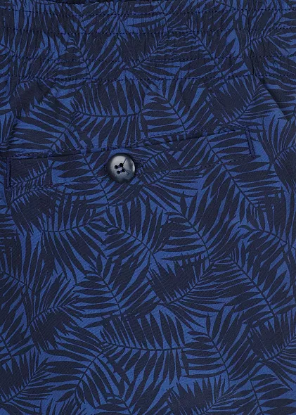 Плавки-шорты с эластичным поясом на кулиске сшили из полиэстера, окрашенного так, чтобы создать эффект выцветшей вещи. Модель дополнена двумя боковыми и одним задним карманом с клапаном.