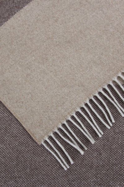 Плед Balze изготовили из шерсти с добавлением кашемира. Изделие с двумя широкими контрастными полосами украшено бахромой.
