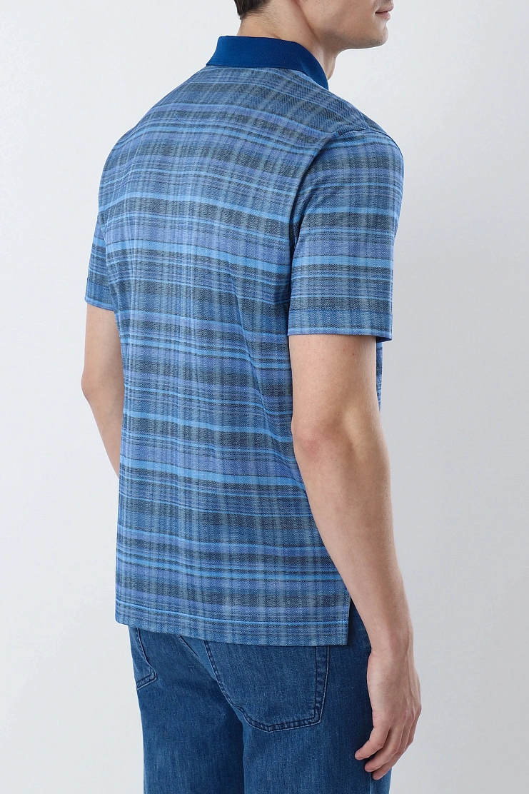 Поло в контрастную клетку идеально подойдет для теплых летних дней благодаря коротким рукавам и дышащему хлопковому материалу. Модель выполнена с верхней застежкой на пуговицы.