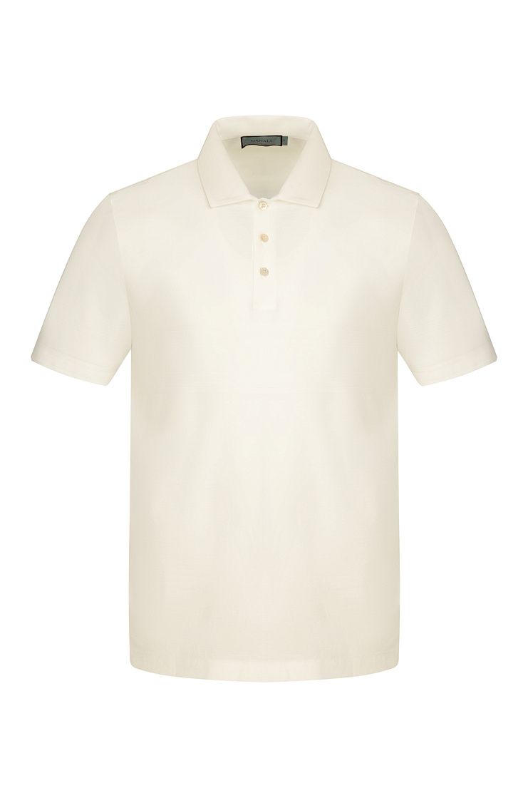 Рубашку поло выполнили из мягкого и тонкого хлопкового трикотажа. Модель с короткими рукавами дополнена планкой на пуговицах.