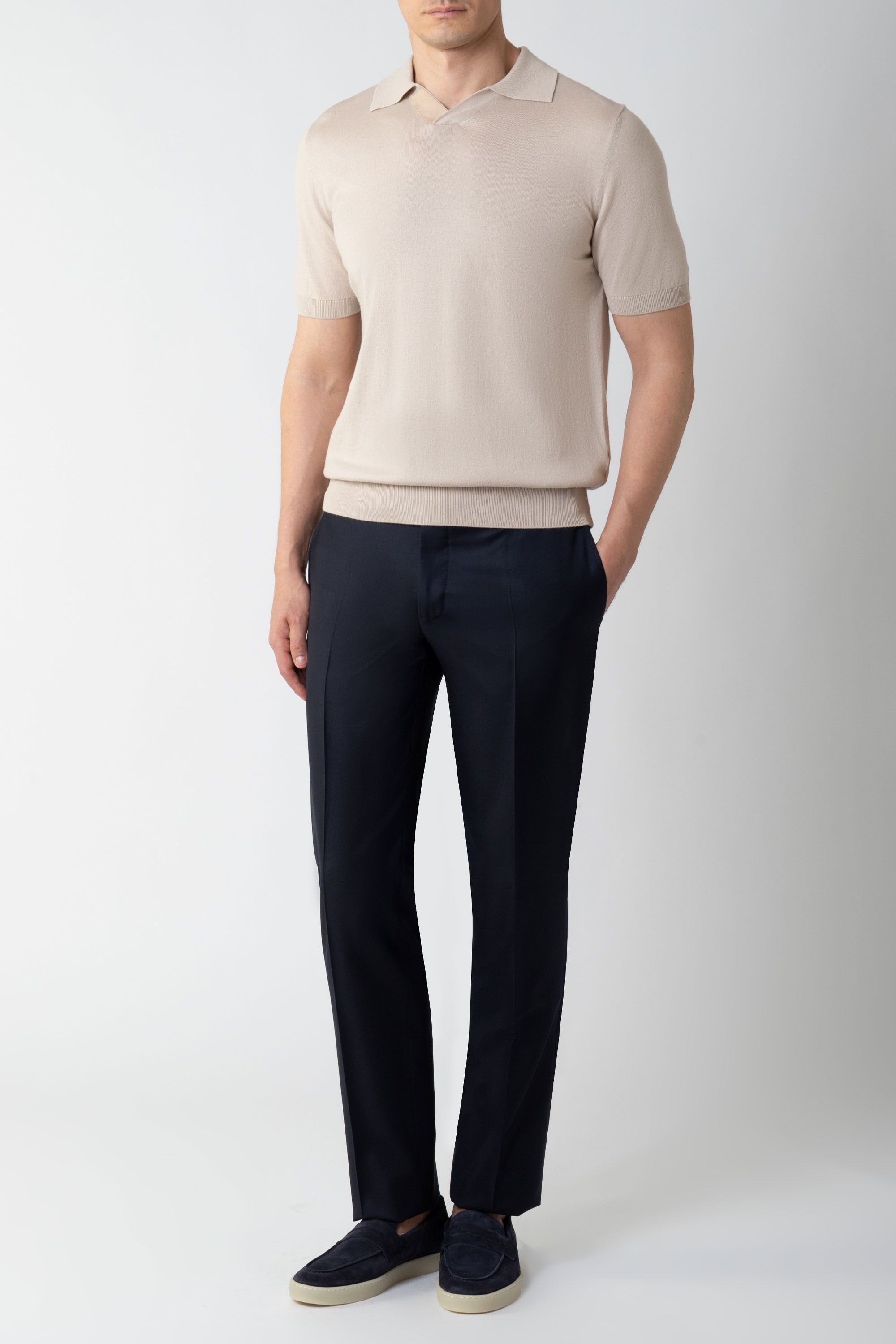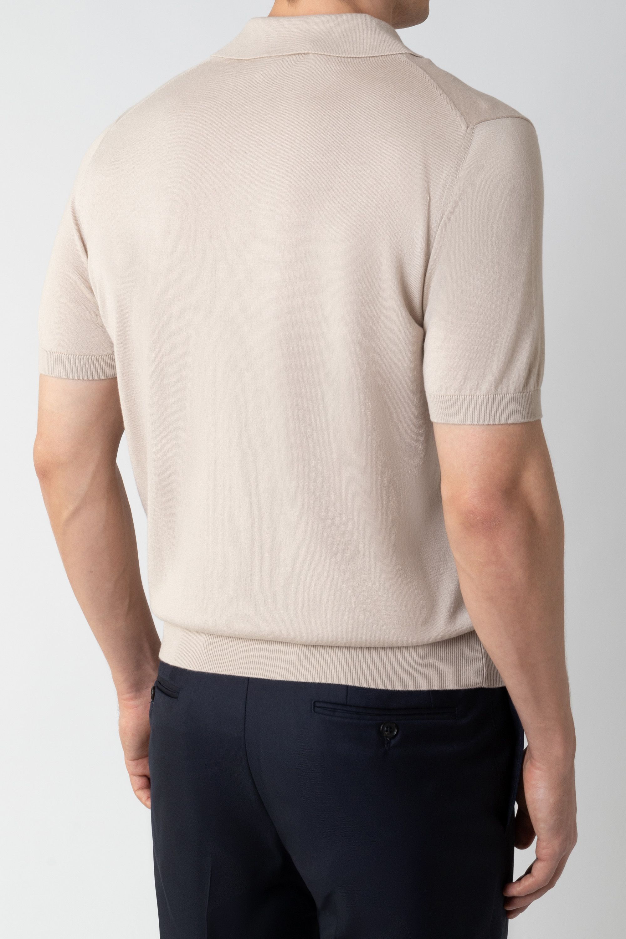 Поло с короткими рукавами выполнили из мягкого хлопкового пике. Модель дополнена отложным трикотажным воротником, эластичной отделкой в рубчик и короткой планкой с застежкой на пуговицы.