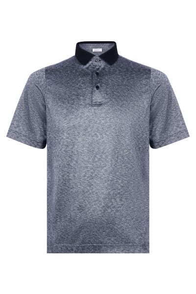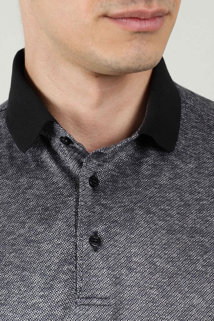 Джемпер-поло из ткани с диагональной фактурой. Модель свободного кроя имеет короткие рукава и отложной воротник на пуговицах.