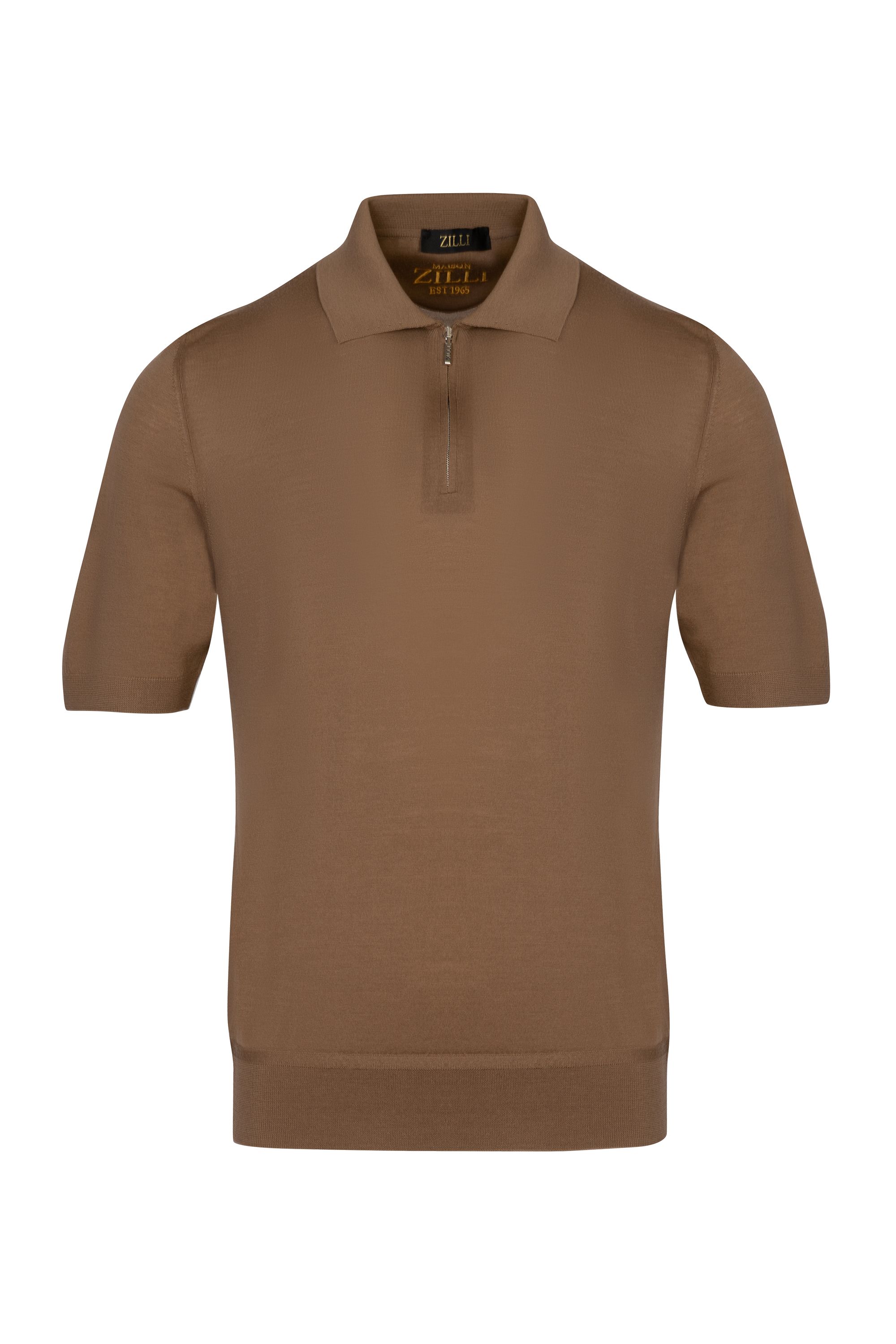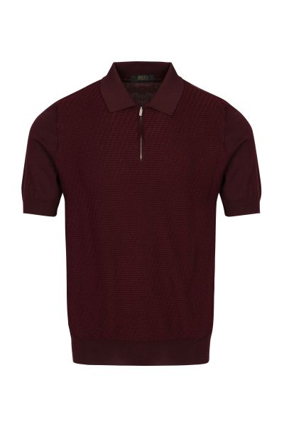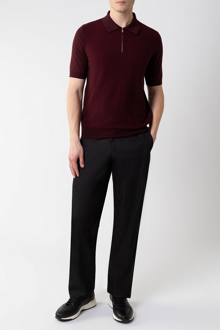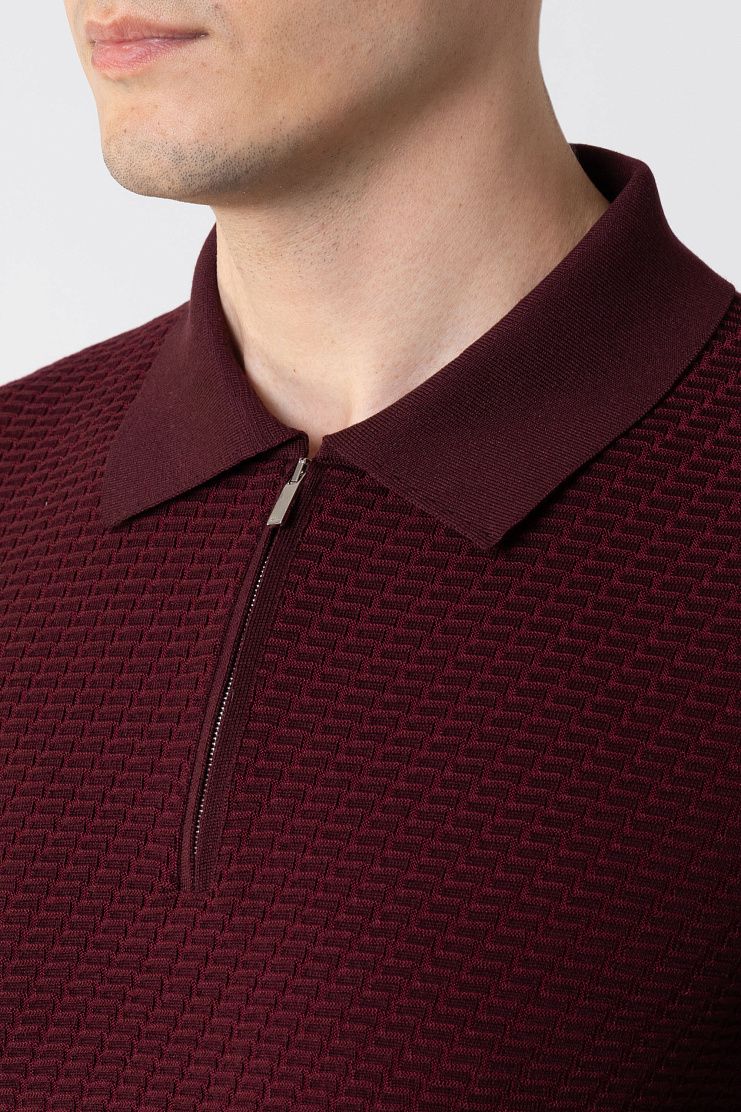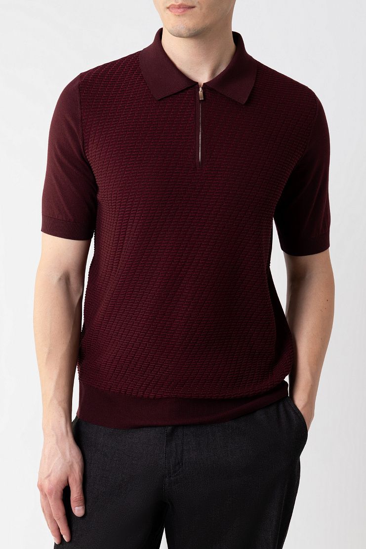 Поло с рельефным узором спереди выполнили из тонкого трикотажа на основе шелка и хлопка. Такой легкий, эластичный и дышащий материал комфортно ощущается на теле. Модель дополнена отделкой в рубчик на манжетах и поясе и застегивается на молнию.