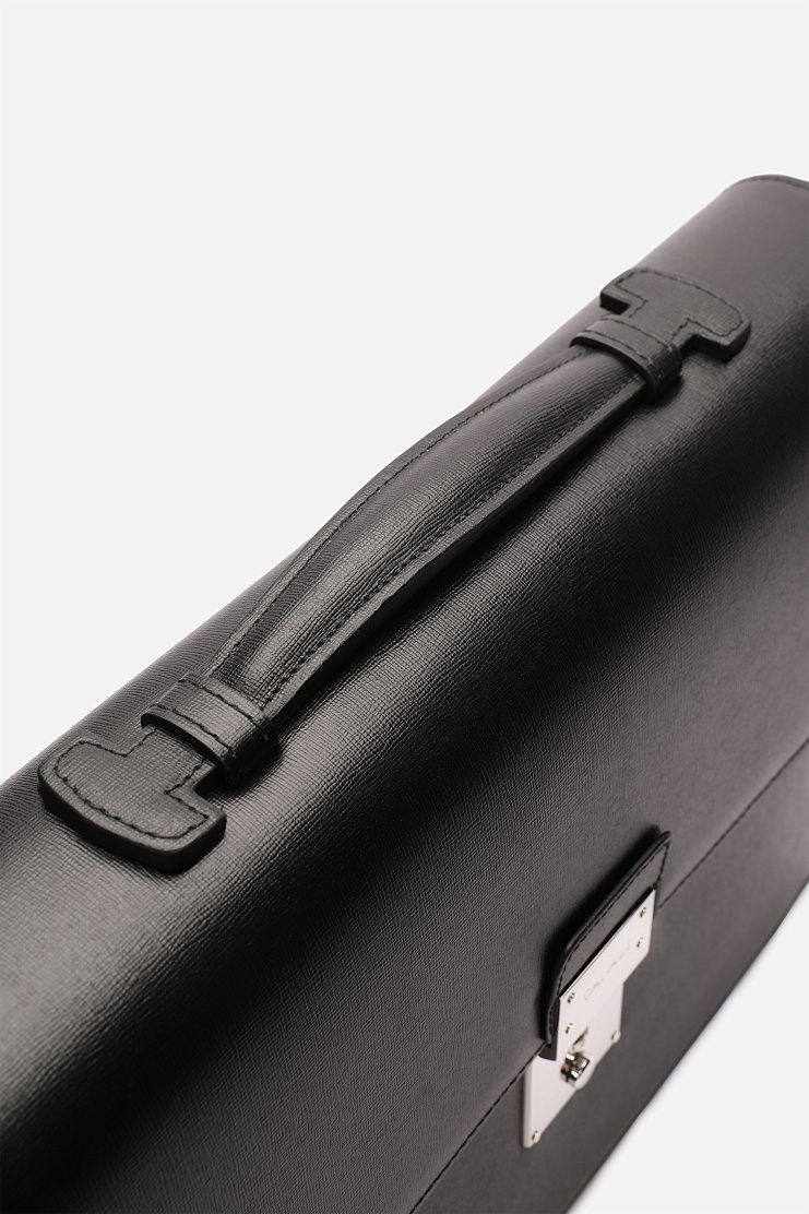 Портфель из сафьяновой кожи в сдержанном классическом стиле идеально подойдет для деловых встреч. Модель с кодовым замком имеет два основных отделения, отделение на молнии, три внутренних кармана и удобную ручку.