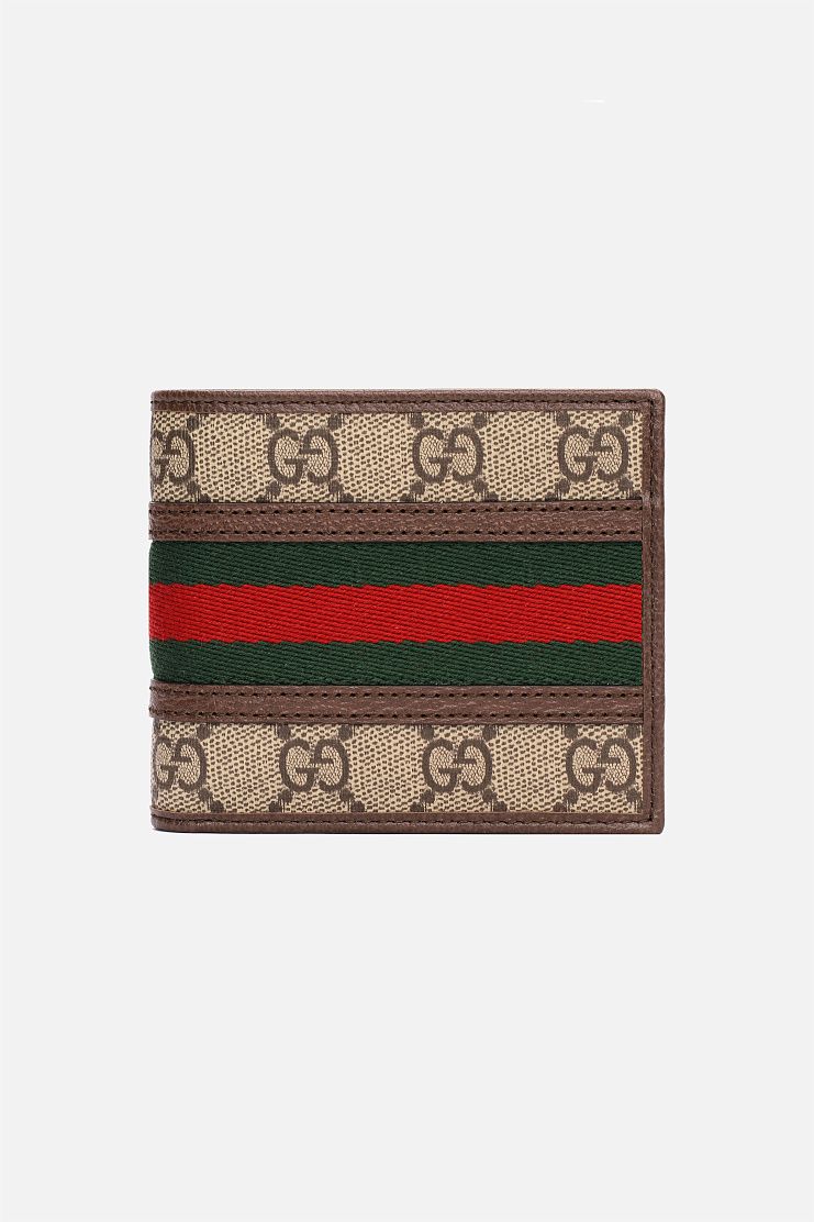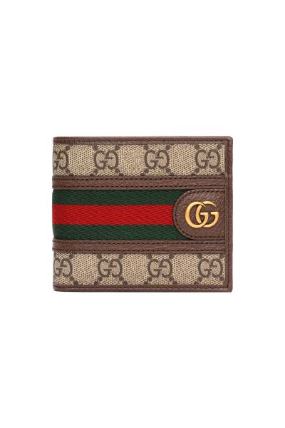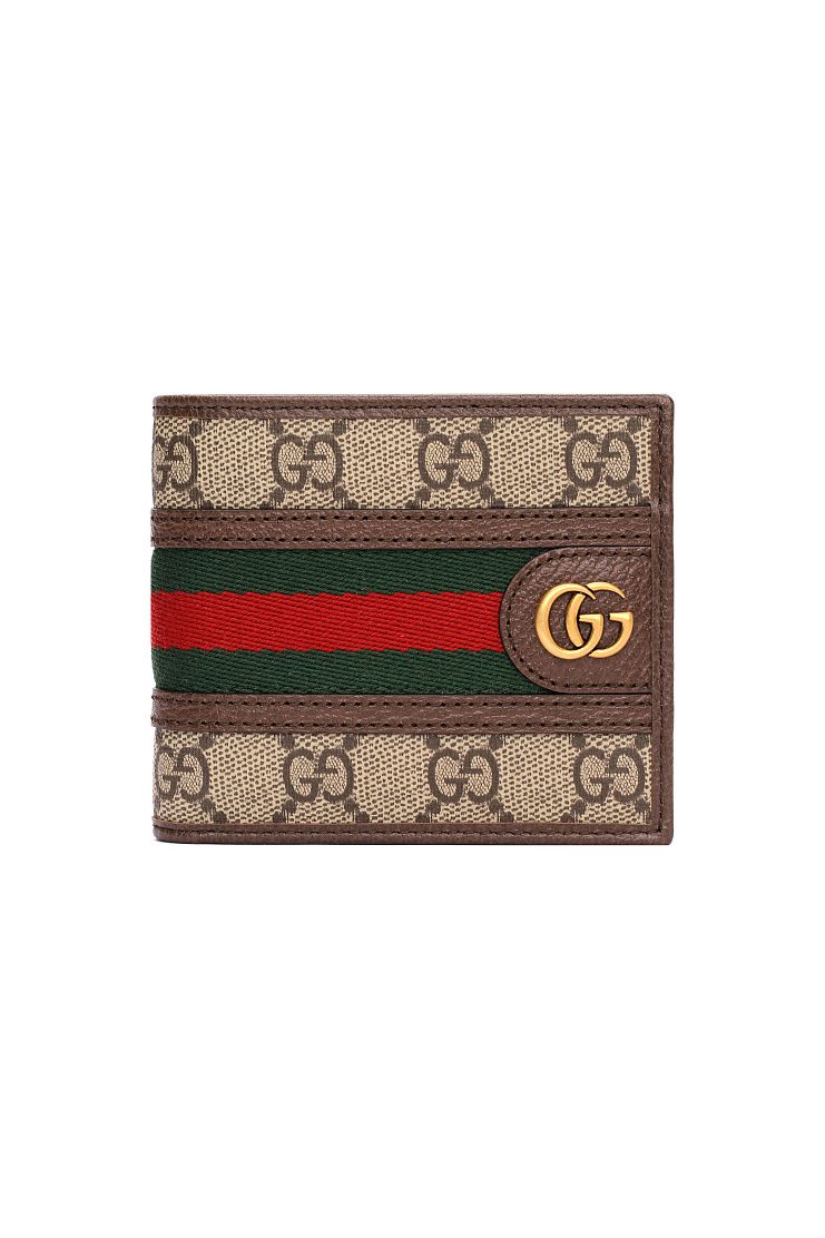 Портмоне с узнаваемым принтом, культовой красно-зеленой полоской и знаменитым логотипом в виде двух переплетающихся букв G. Аксессуар имеет восемь слотов для карт, два кармашка и отделение для банкнот.