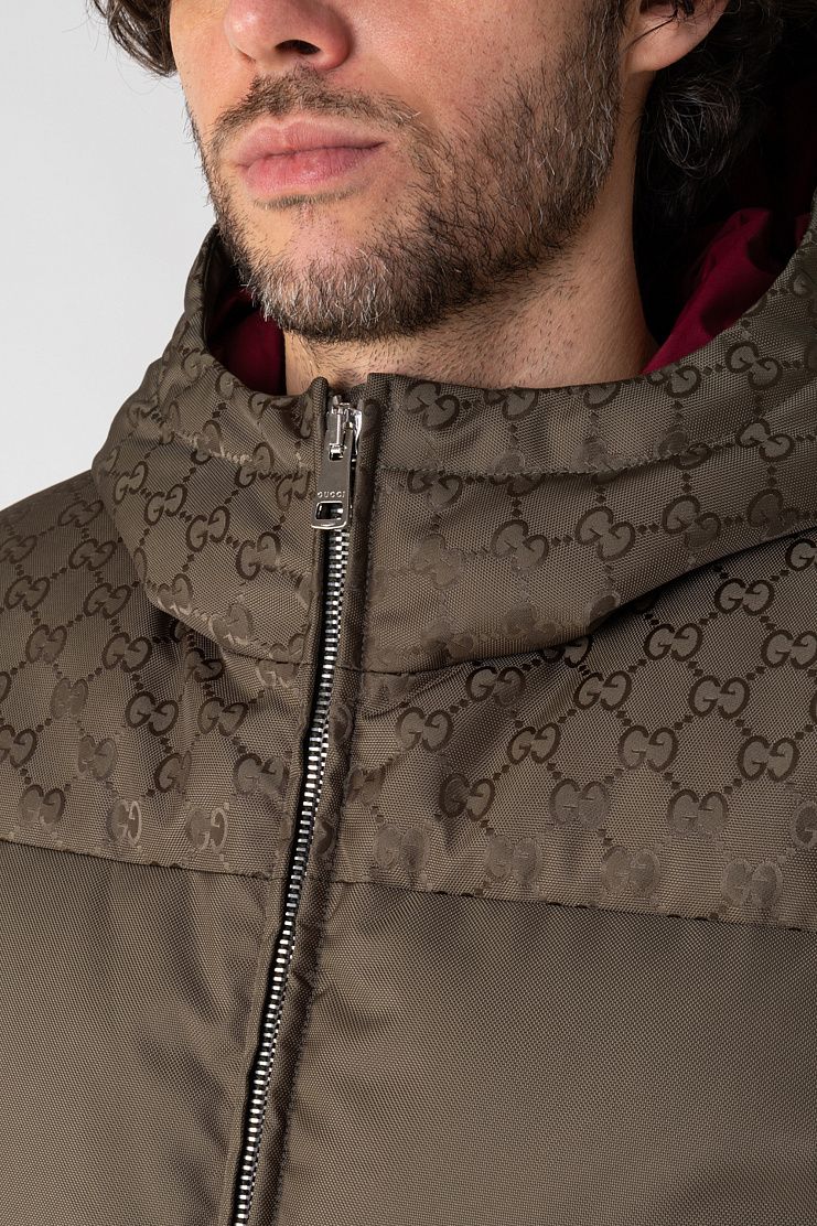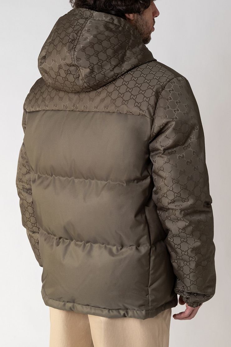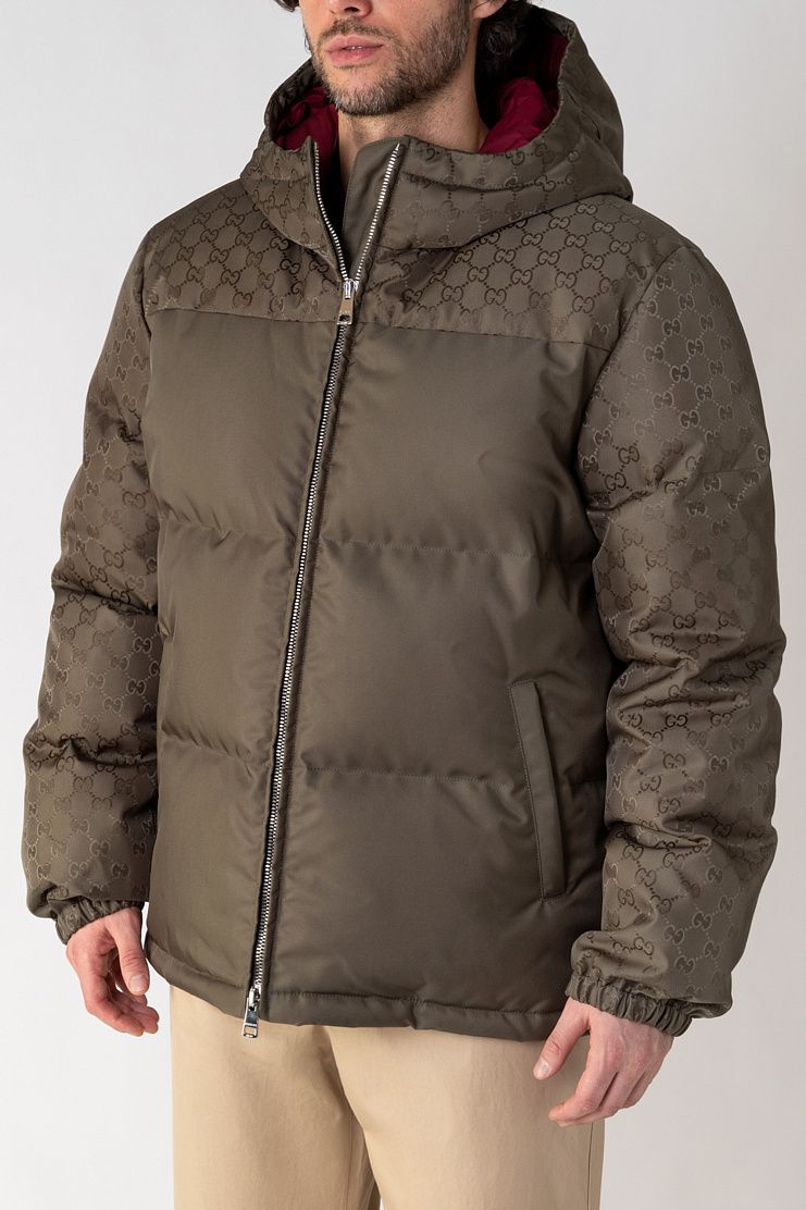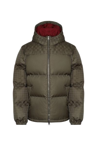 Объемный пуховик изготовили из плотного и жесткого канваса на основе нейлона. Благодаря наполнителю из смеси пуха и пера в куртке будет тепло и комфортно даже в холодную погоду. Модель дополнена воротником-стойкой, капюшоном на кулиске, карманами, эластичными манжетами и двусторонней застежкой-молнией. Узнаваемый принт GG на рукавах и капюшоне создает фирменный акцент.