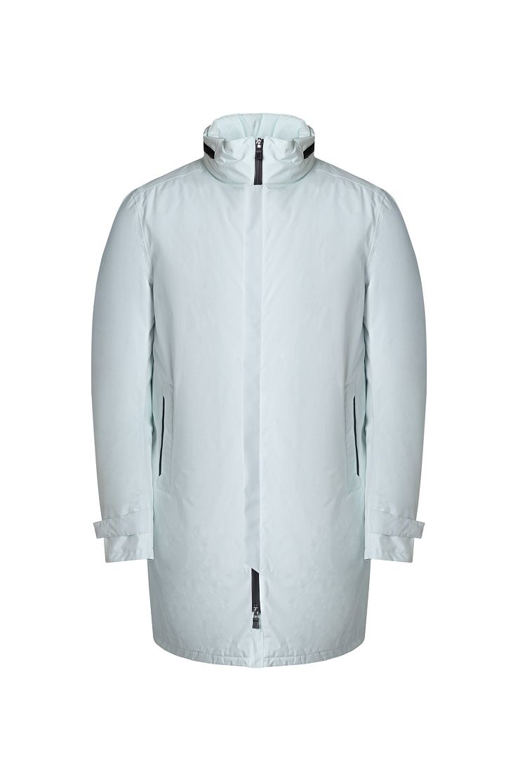 Пуховик выполнен из Gore-Tex — прочной ткани с водоотталкивающей и ветрозащитной мембраной. Ультратонкая пуховая подкладка и проклеенные швы обеспечивают сохранение тепла даже в мороз. Модель дополнена воротником-стойкой, складным капюшоном, карманами, длинными рукавами и двухсторонней застежкой-молнией.