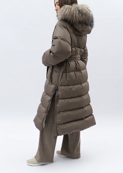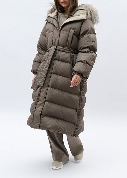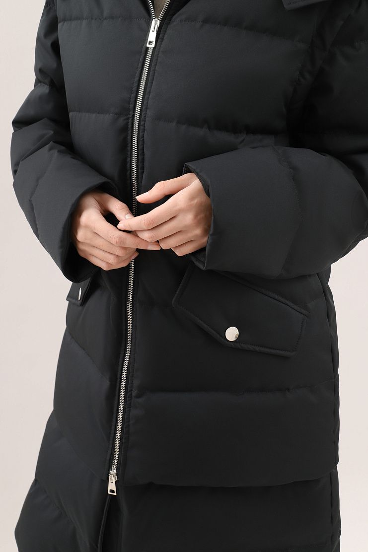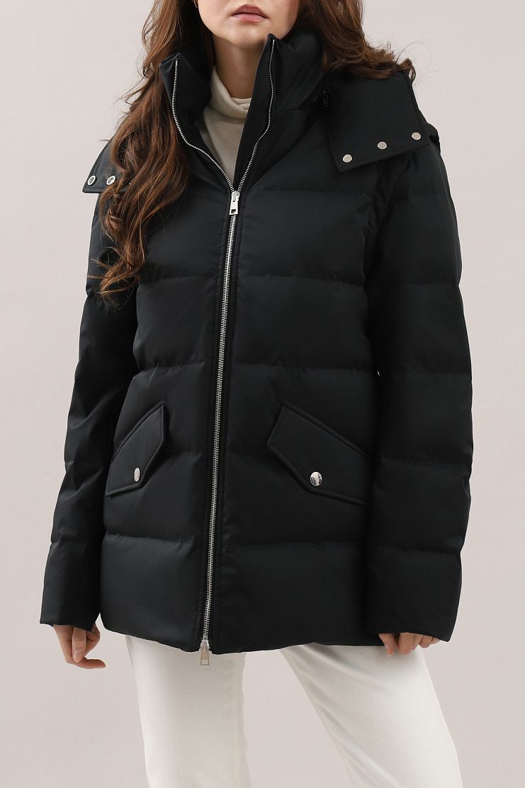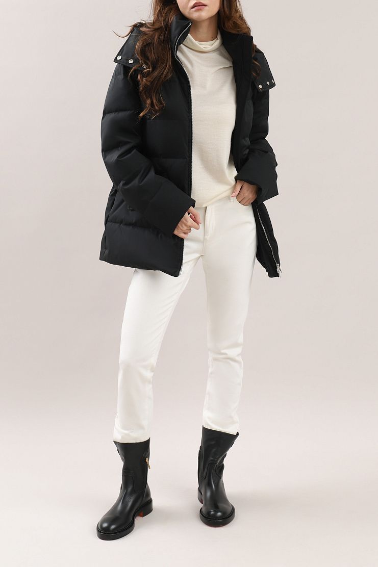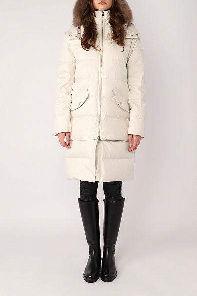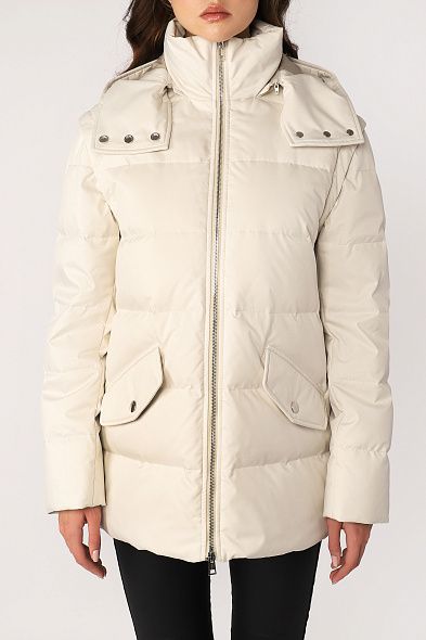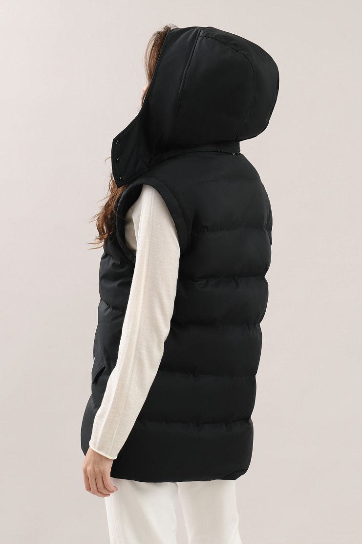 Удлиненная куртка с возможностью трансформации в более короткую модель или жилет прекрасно подойдет для холодной и ветренной погоды. Изделие свободного кроя имеет воротник-стойку, съемный капюшон на кнопках, боковые карманы и застежку на молнию.