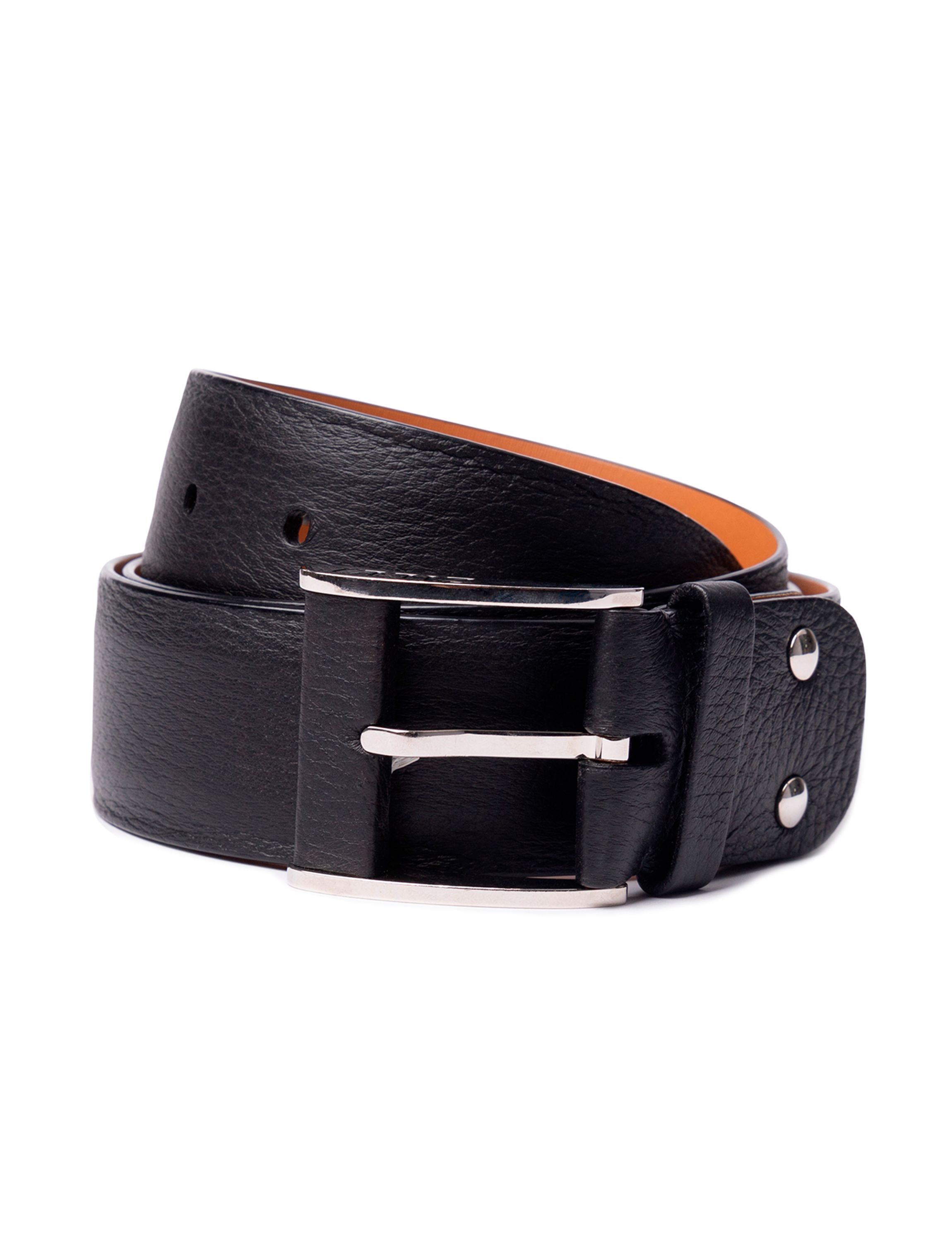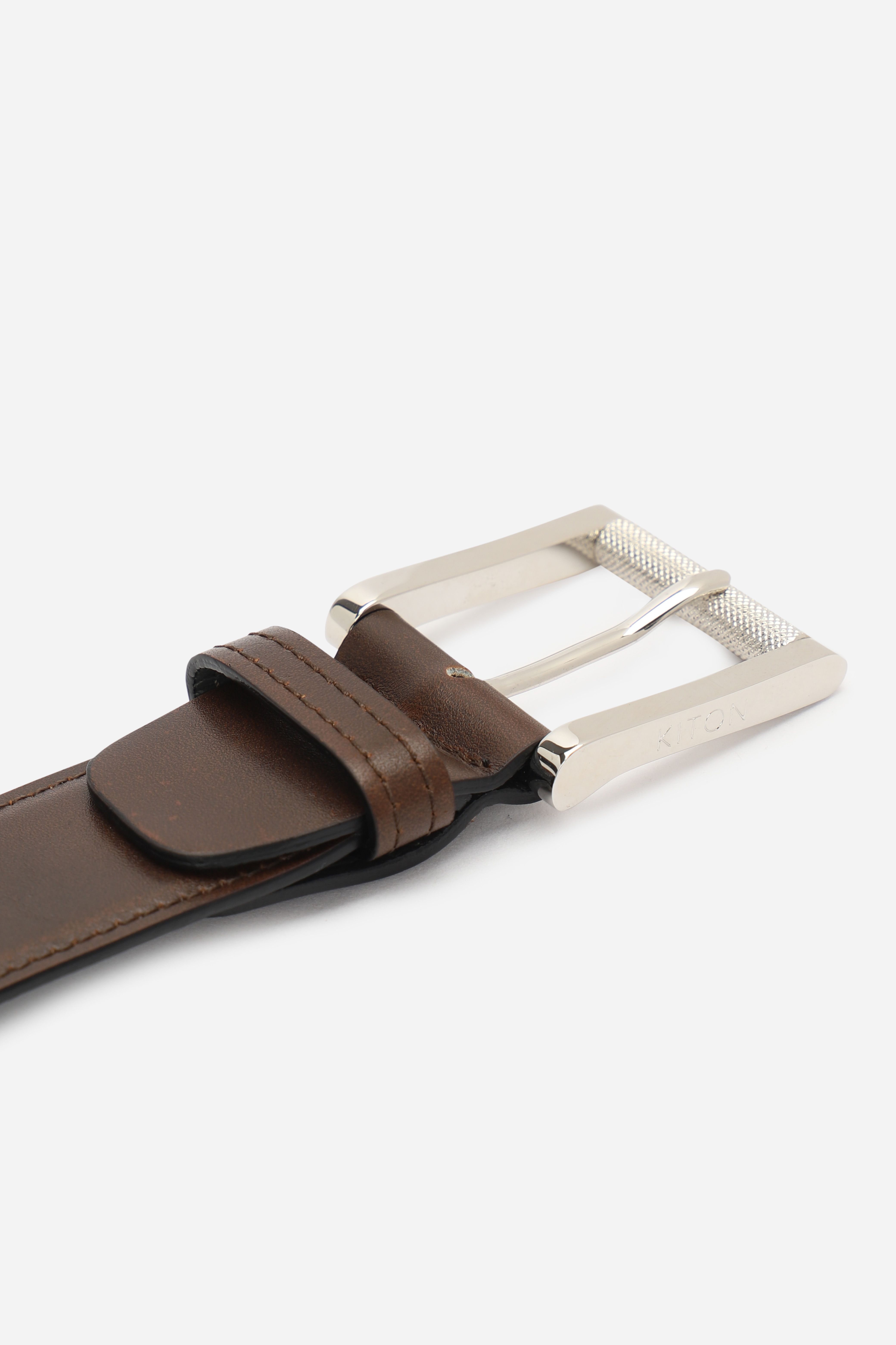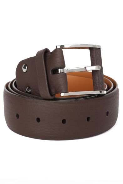 Ремень из сафьяновой кожи с тиснением в виде логотипа Santoni. Аксессуар имеет серебристую прямоугольную пряжку.