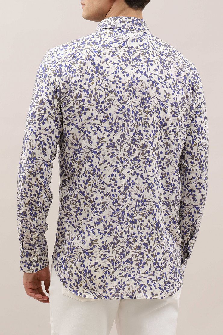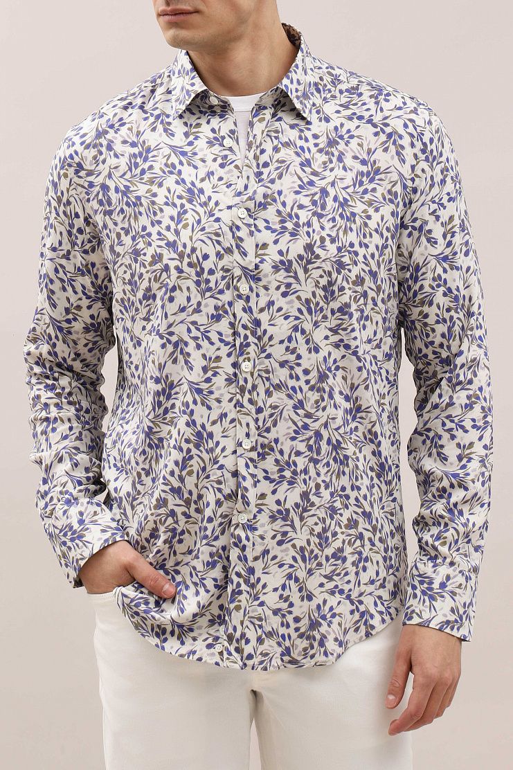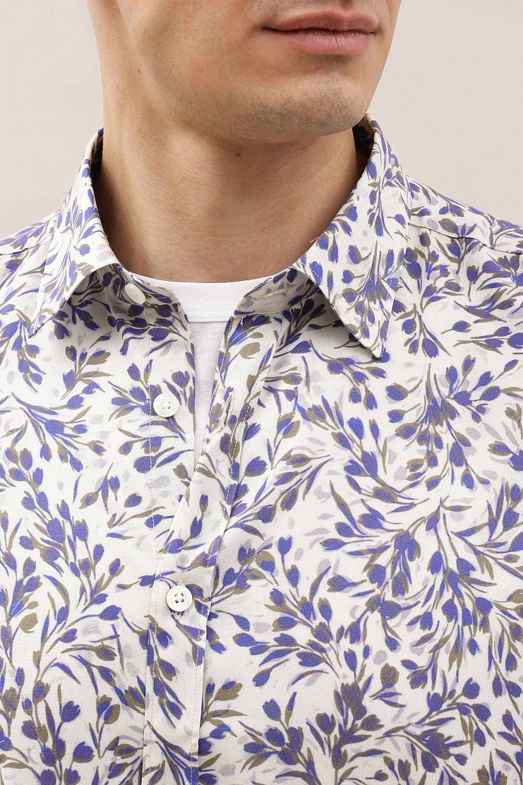Рубашка с принтом в цветочек в сочетании с однотонной футболкой позволит создать стильный летний образ на каждый день. Модель свободного кроя имеет короткие рукава, отложной воротник, нагрудный накладной карман и застежку на пуговицы.