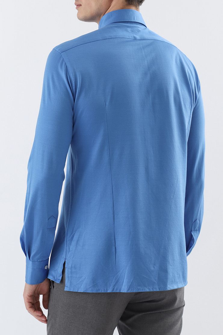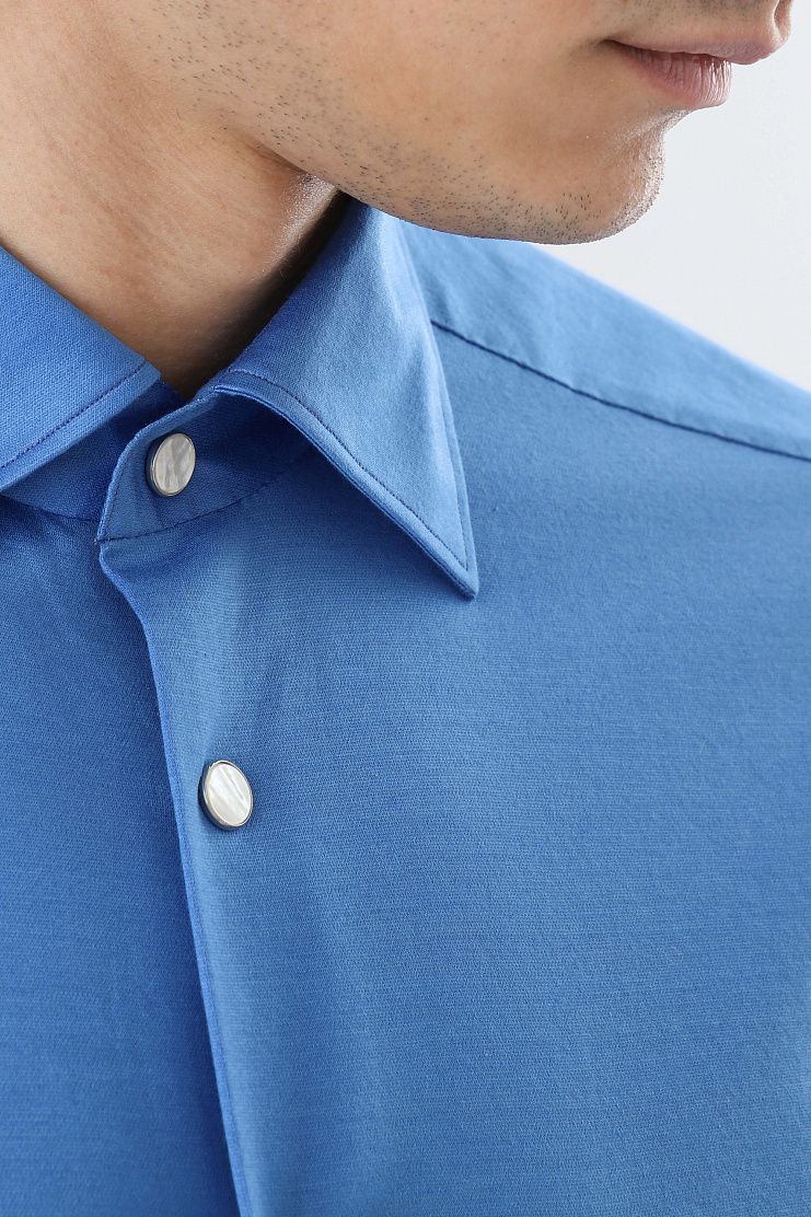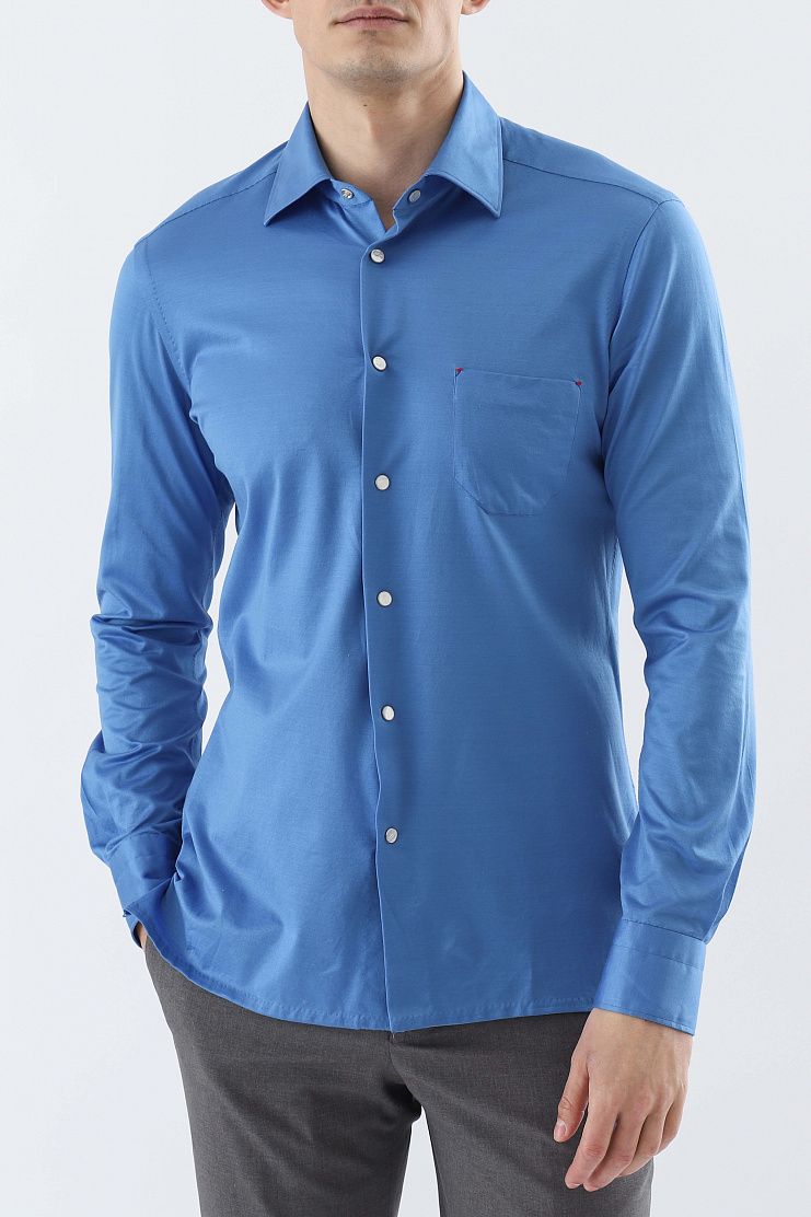 Рубашка из мягкого хлопка. Модель свободного силуэта, с отложным воротником, нагрудным карманом и застежкой на кнопки.