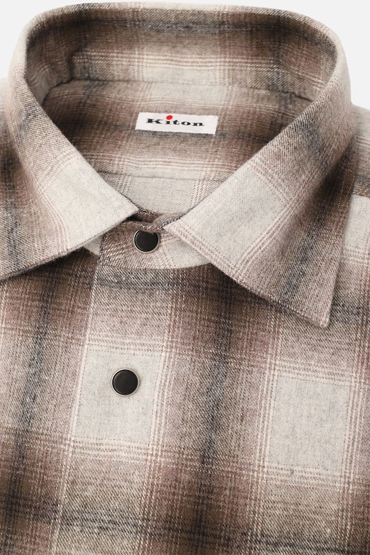Рубашку с длинным рукавом сшили из мягкой хлопковой ткани в клетку. Модель дополнена отложным воротником и застежкой на контрастные пуговицы. Стежок фирменного алого оттенка подчеркивает принадлежность к бренду.