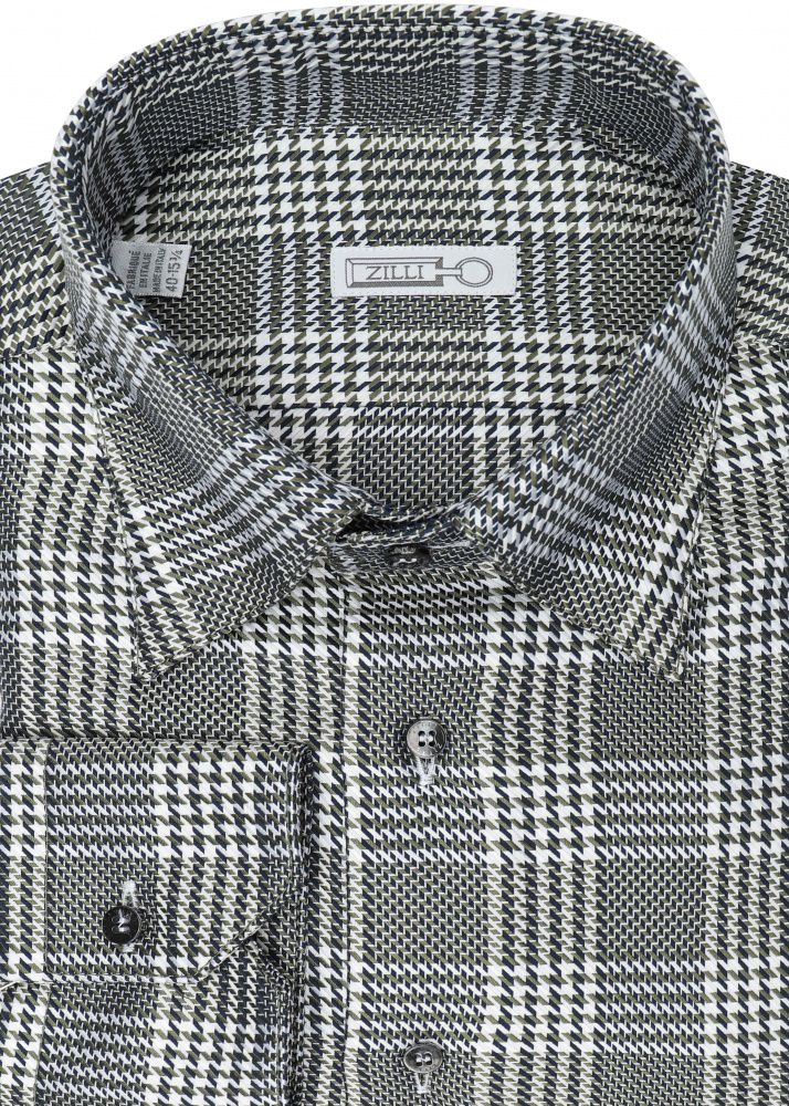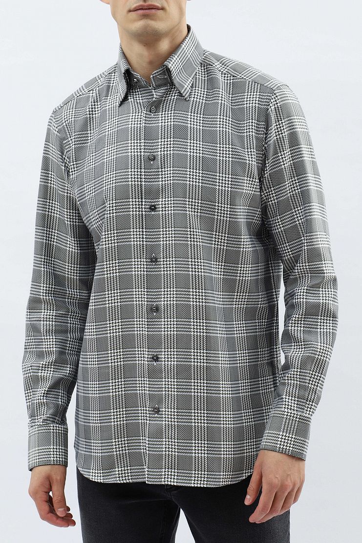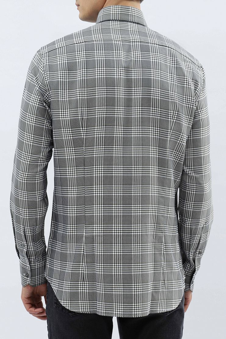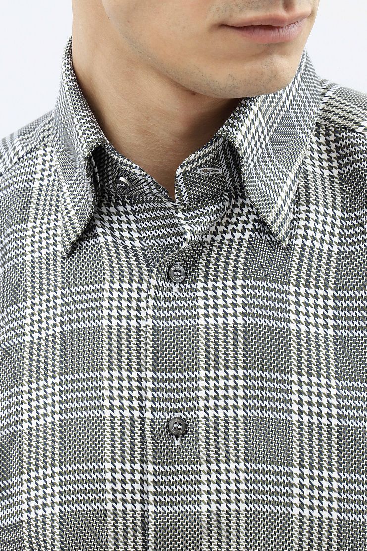 Рубашка в клетку гленчек. Модель приталенного силуэта с застежкой на пуговицы.