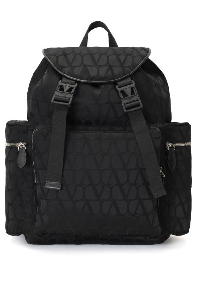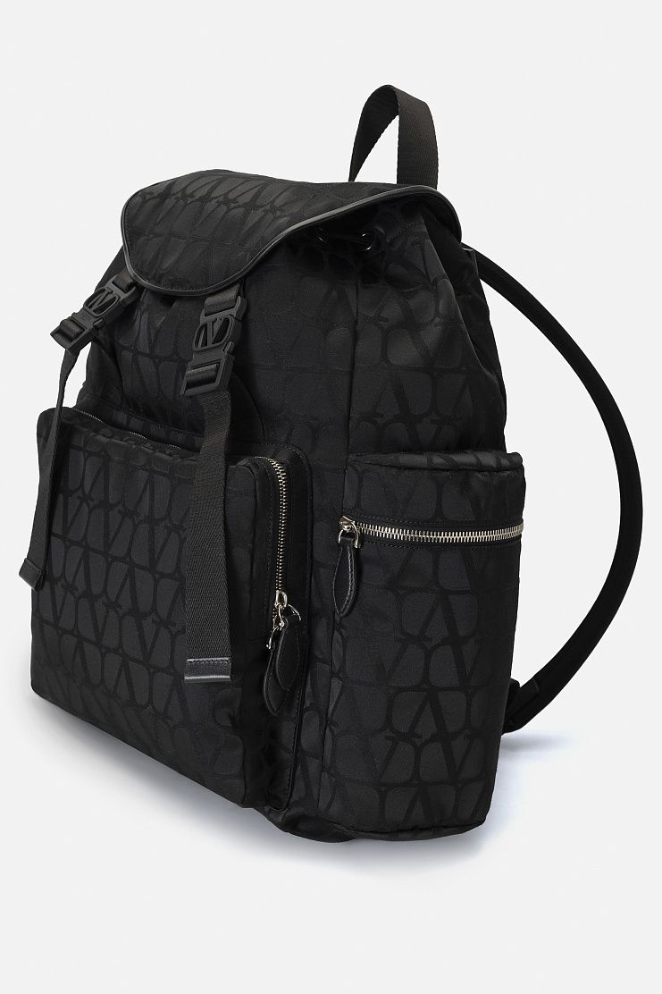 Объемный рюкзак сшили из плотного текстиля с фирменным жаккардовым узором. Модель с двумя плечевыми ремнями и короткой ручкой дополнили большими внешними карманами на молниях. Внутри предусмотрено отделение для ноутбука. Рюкзак с откидным клапаном удобно застегивается с помощью пряжек фастекс.