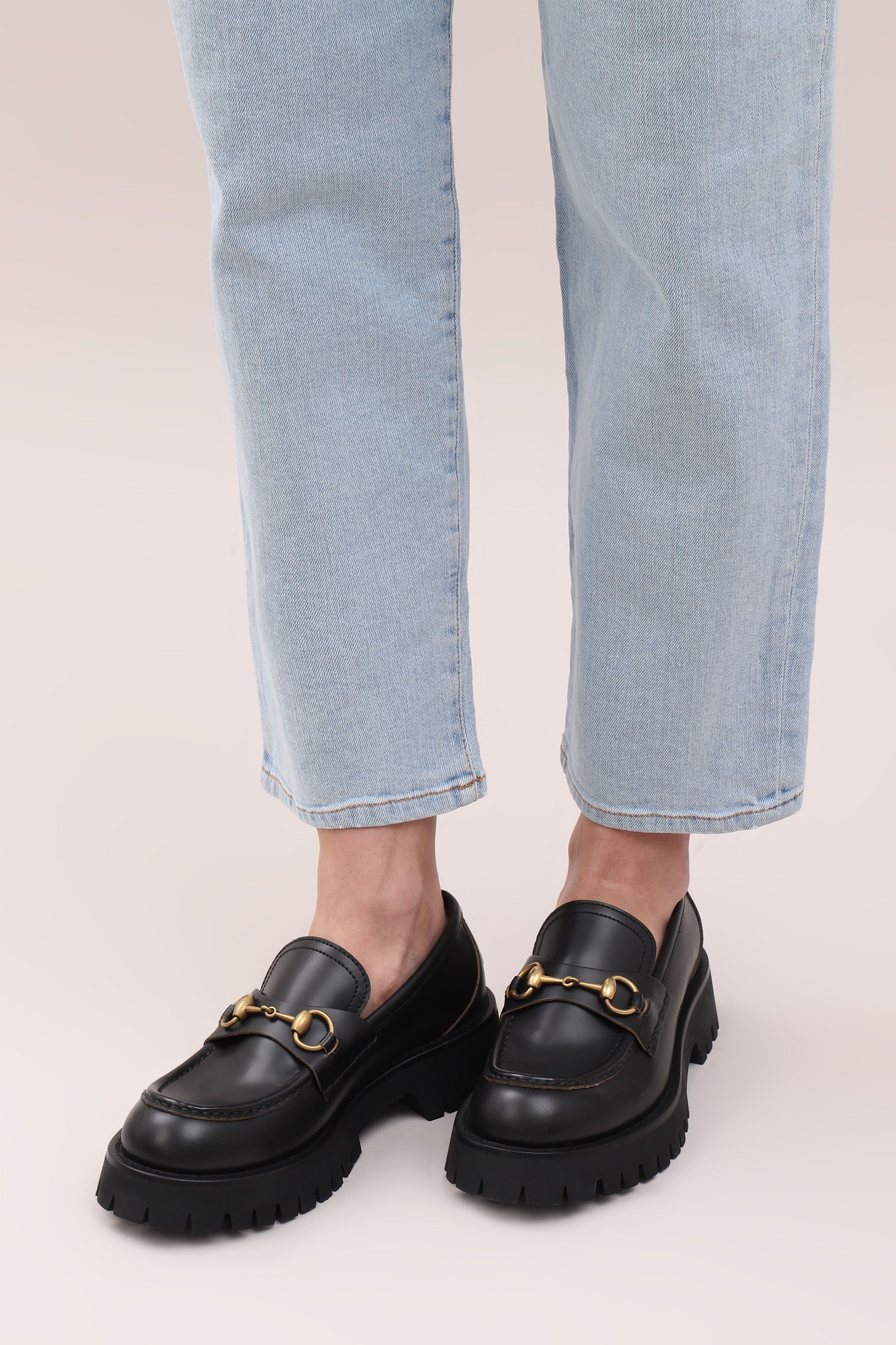 Сандалии на резиновой подошве выполнили из гладкой кожи с тисненым паттерном GG. Один из трех широких ремешков с застежкой велкро декорировали золотистым логотипом Double G.