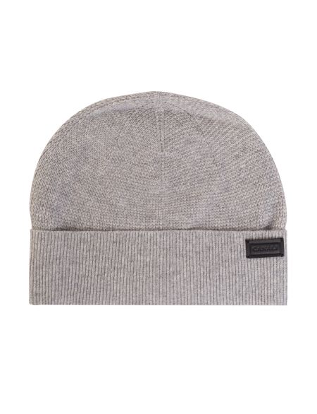 Шапка из тонкой шерсти и кашемира защитит от холода и станет стильным элементом образа. Модель с отворотом украсили брендированной нашивкой в тон.