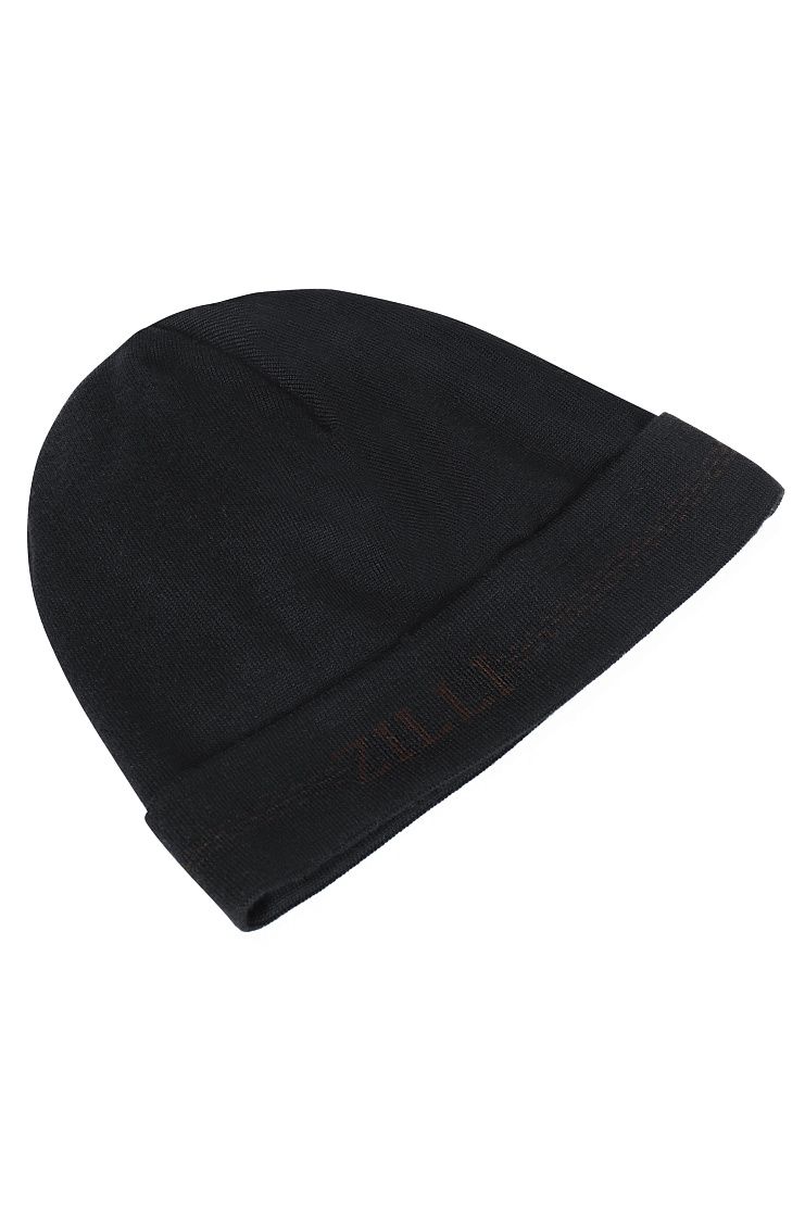 Трикотажная шапка из кашемира и шелка с подворотом и жаккардовой надписью Zilli.