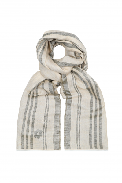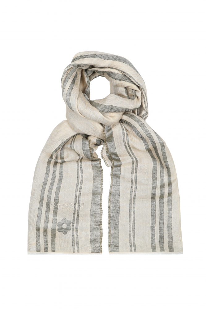 Шарф из фактурной ткани с жаккардовым узором, вышитым логотипом и необработанными краями.
