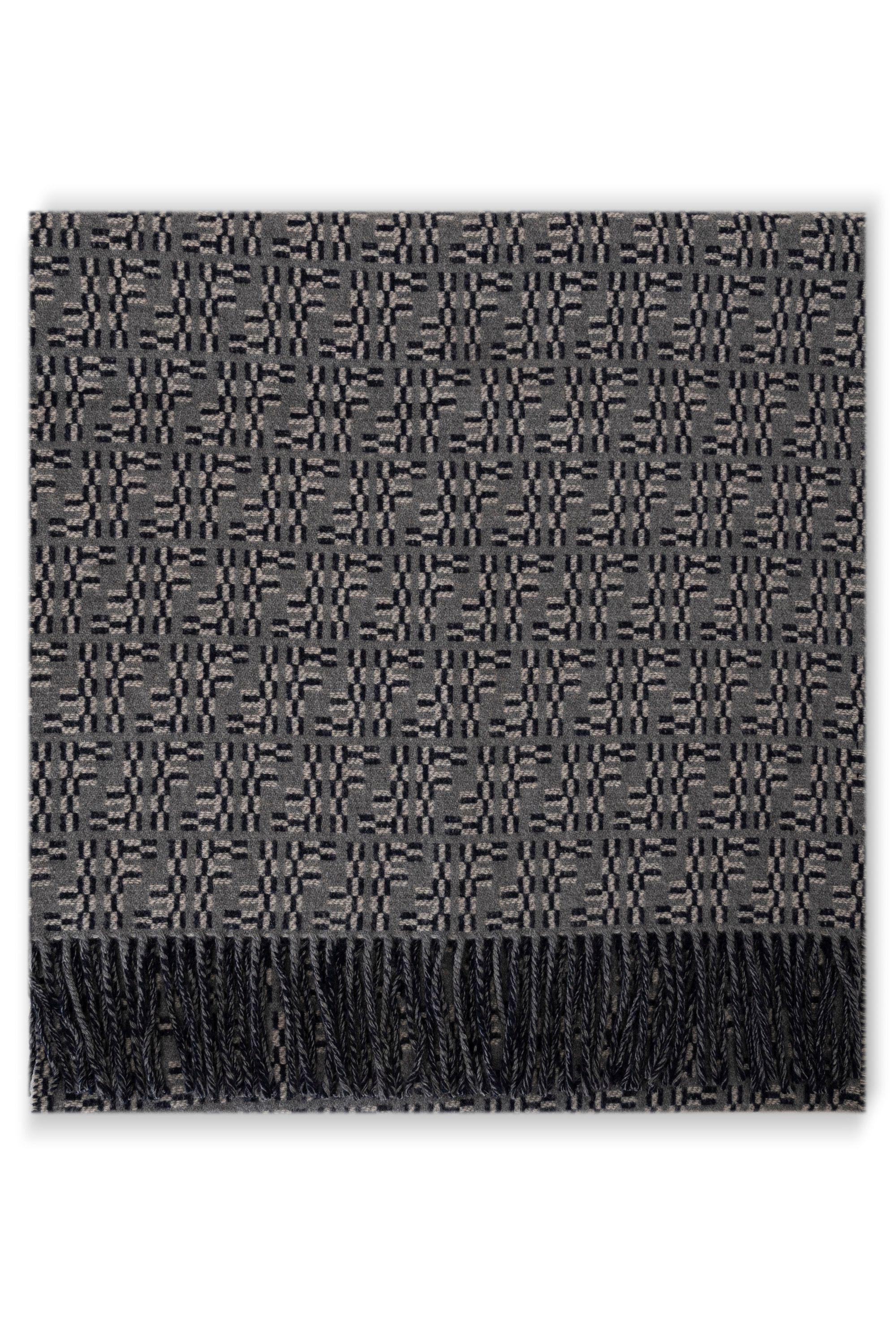 Шарф с жаккардовым фирменным принтом FF и бахромой по краям выполнили из тонкой и мягкой шерсти. Аксессуар настолько легкий, что почти не ощущается на теле, но при этом хорошо согревает. Такой шарф гармонично дополнит и сдержанные, и более непринужденные образы.