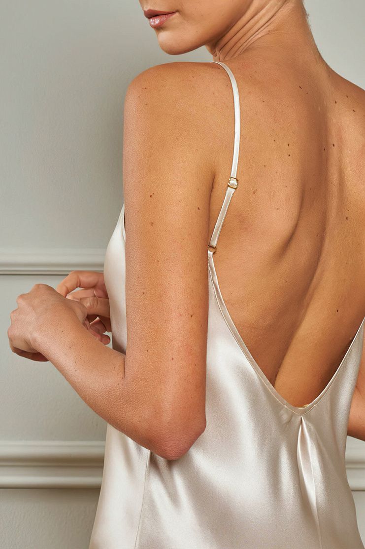 Шелковая сорочка Cascade цвета шампанского подарит Вам атмосферу изысканности даже во время ночного сна. Модель свободного кроя с воротником под горло, длинными рукавами и застежкой на пуговицы.