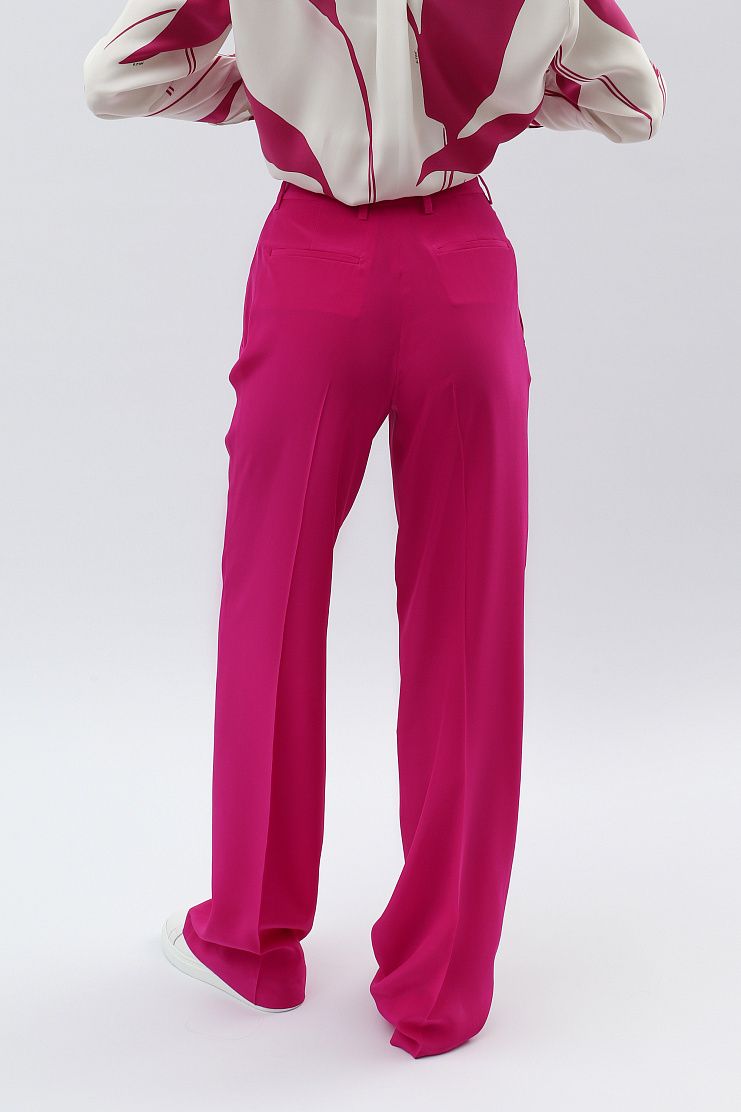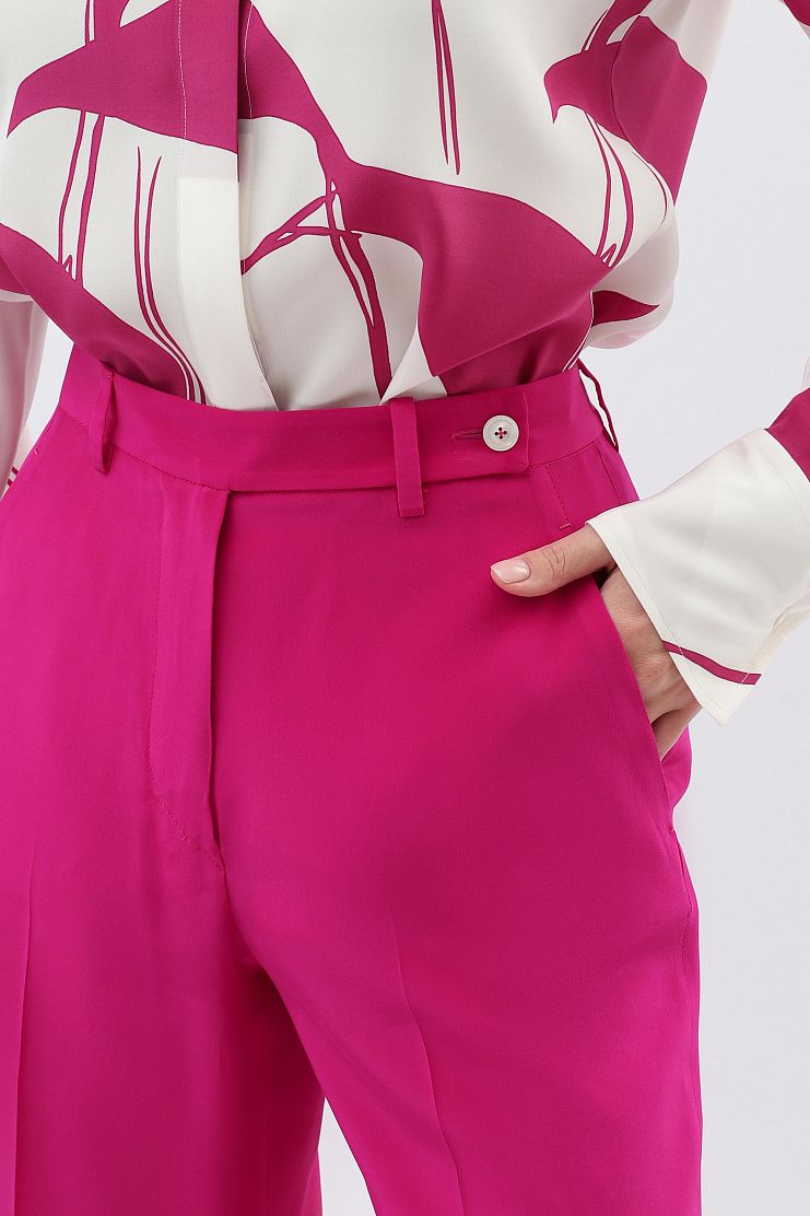 Широкие шелковые брюки идеально подойдут для яркого изысканного образа. Модель свободного кроя со стрелками и застежкой на молнию и пуговицу.
