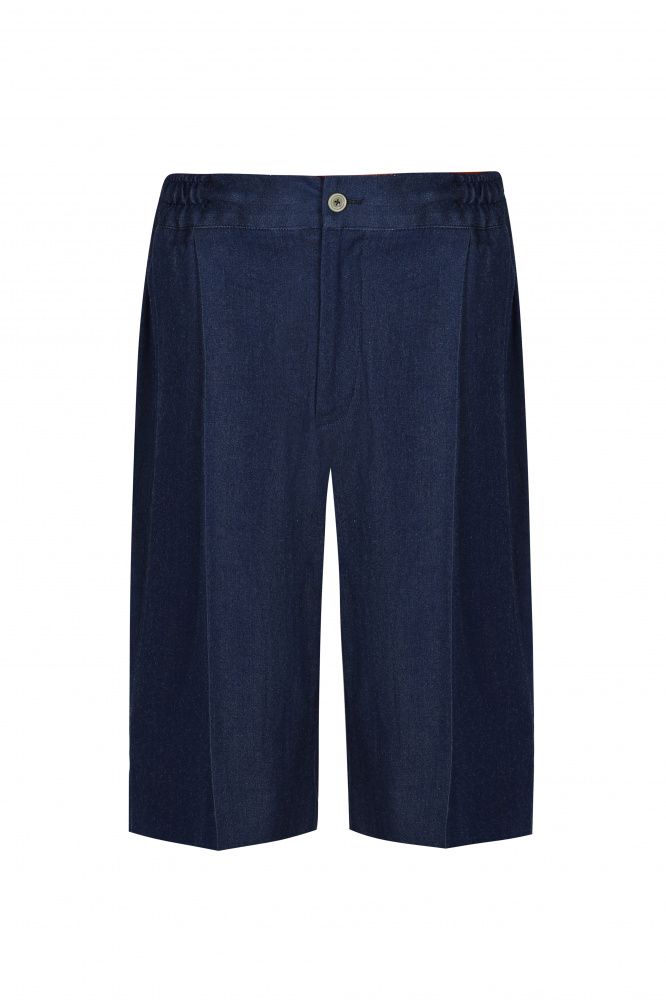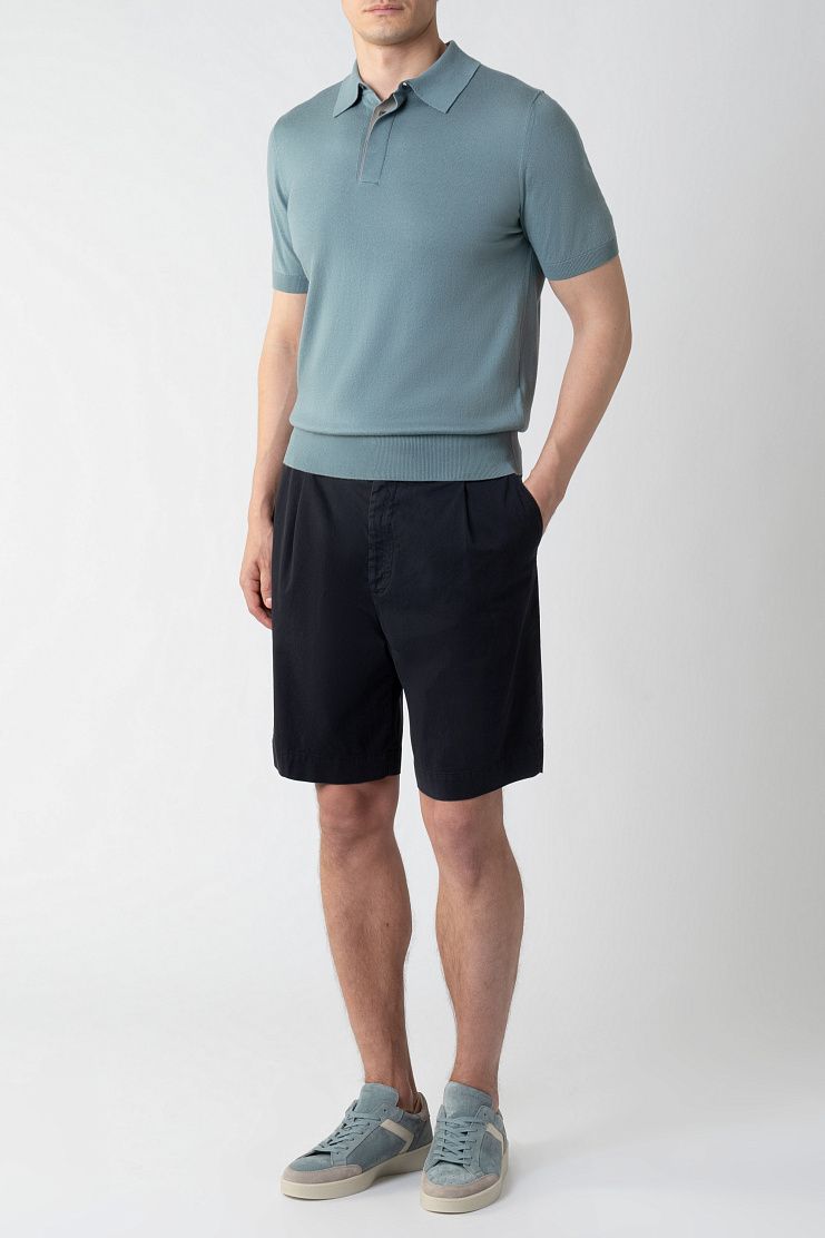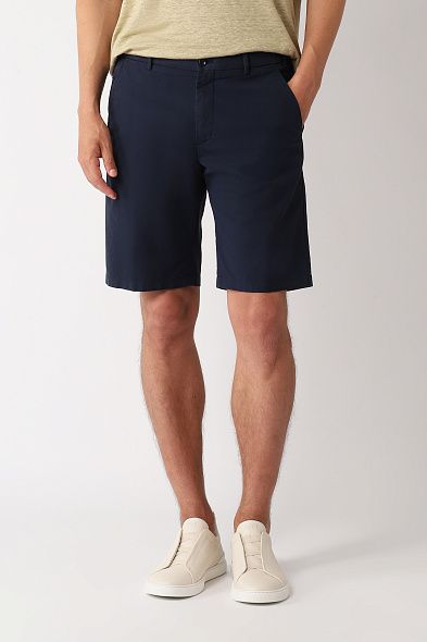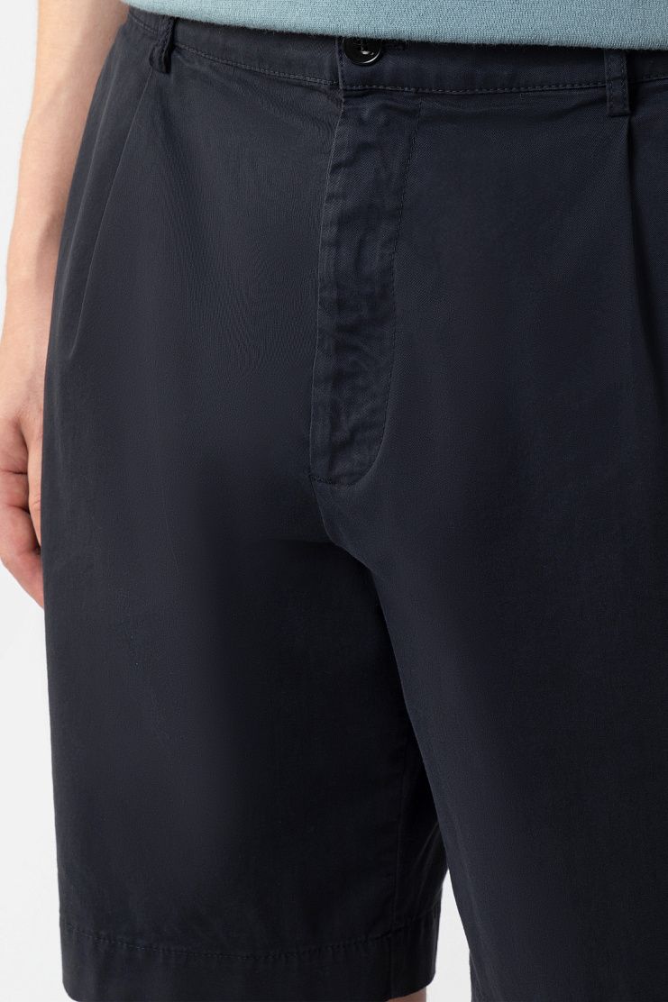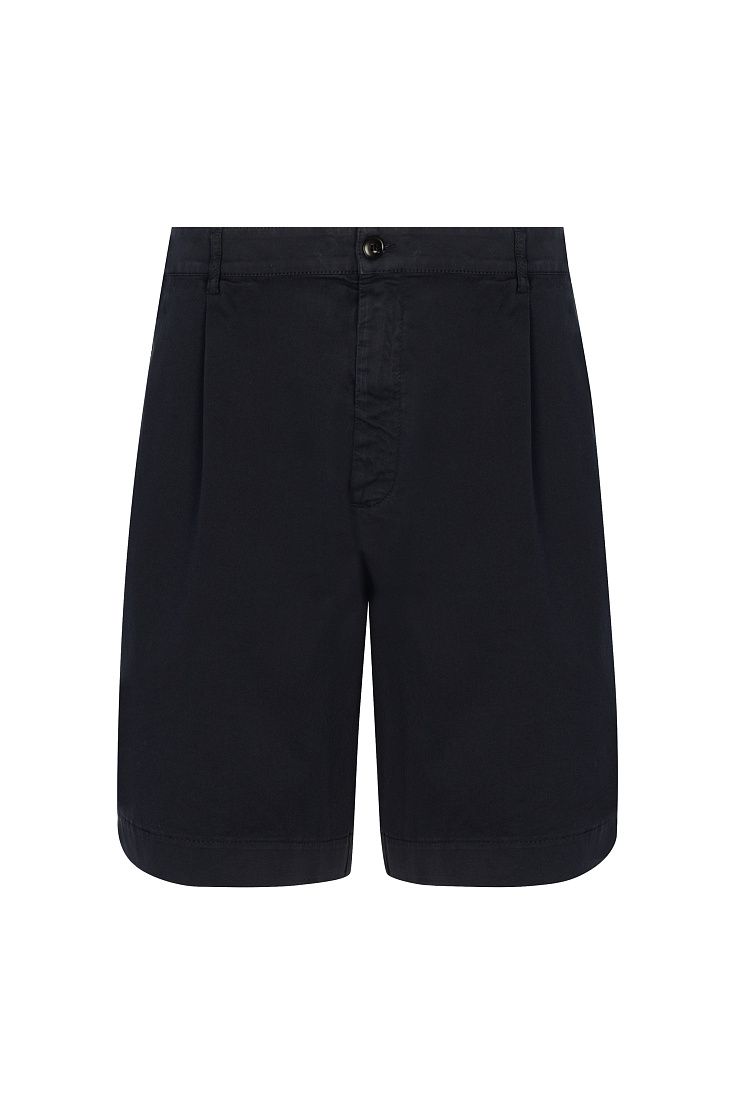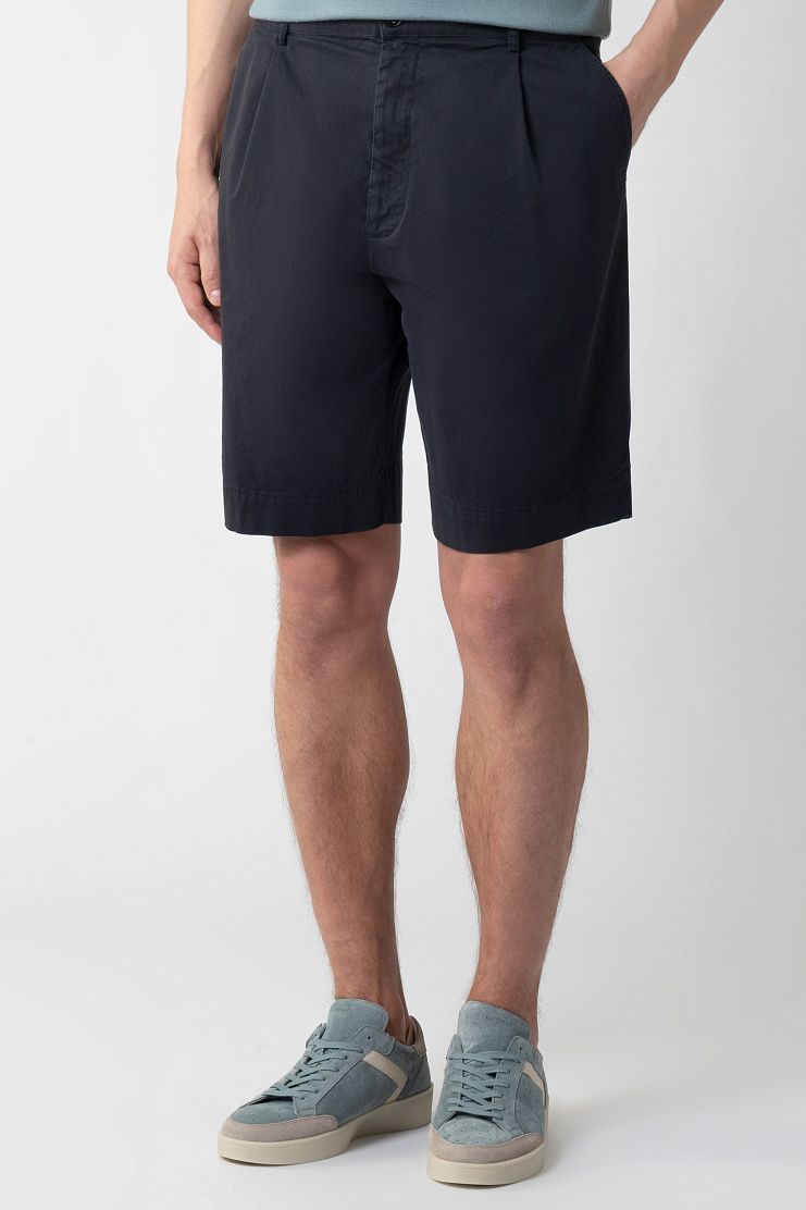 Классические бермуды из хлопка станут комфортной основой непринужденных летних образов. Модель с защипами на поясе дополнили шлевками для ремня и двумя парами карманов. Шорты застегиваются на молнию и пуговицу.