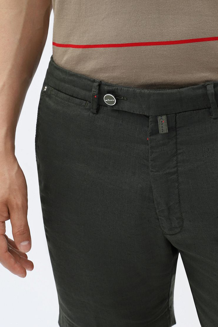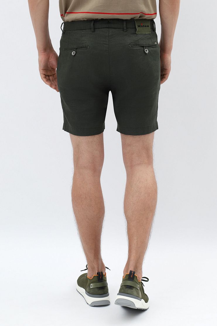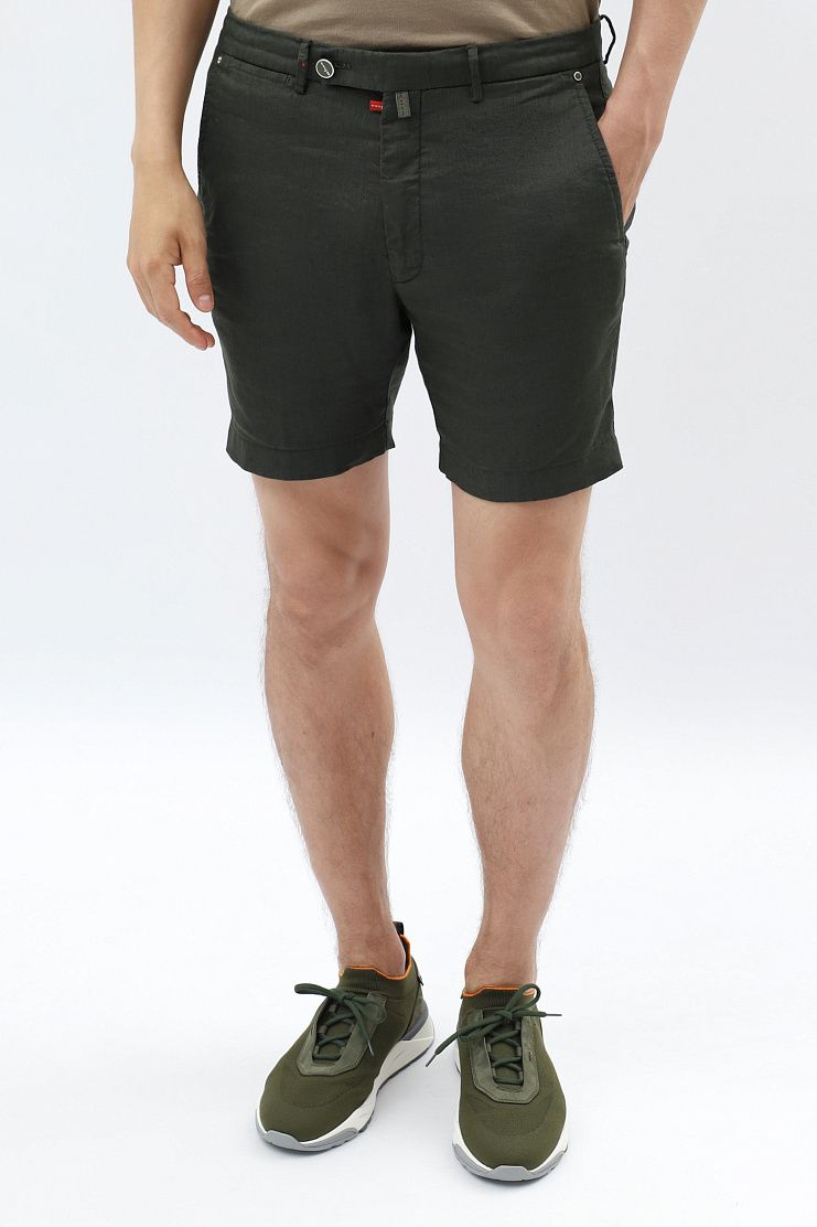 Льняные шорты-бермуды прекрасно подойдут для жаркой летней погоды. Модель свободного кроя с застежкой на молнию и металлическую пуговицу с логотипом.