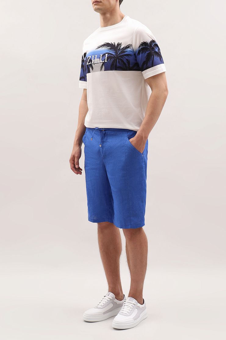 Шорты-бермуды из льняной ткани станут любимым предметом гардероба в летнюю жаркую погоду. Натуральная ткань великолепно пропускает воздух и обеспечивает максимальный комфорт. Модель свободного кроя имеет эластичный пояс и застежку на молнию и металлическую пуговицу. Задний карман украшен вышивкой в виде льва.