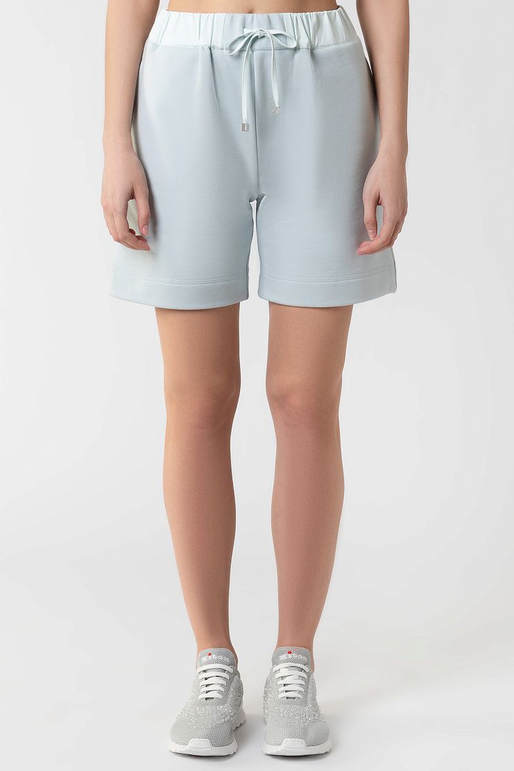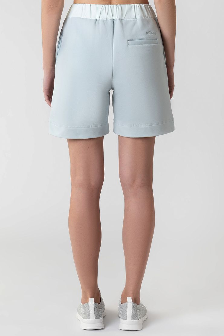Шорты на кулиске сшили из мягкого хлопкового джерси, дополнив вставками из гладкого поплина по бокам и на поясе. Модель дополнена тремя карманами и украшена вышитым логотипом марки. Изделие идеально сочетается с парным худи в спортивном стиле.