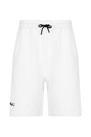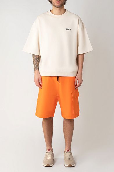 Шорты длиной до колена сшили из немного эластичной ткани на основе льна и хлопка. Помимопрорезных боковых и задних карманов, модель дополнена карманами карго с клапанами. Изделие украсили текстильным ярлыком и патчем на поясе.