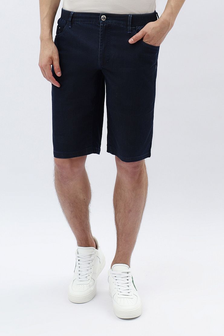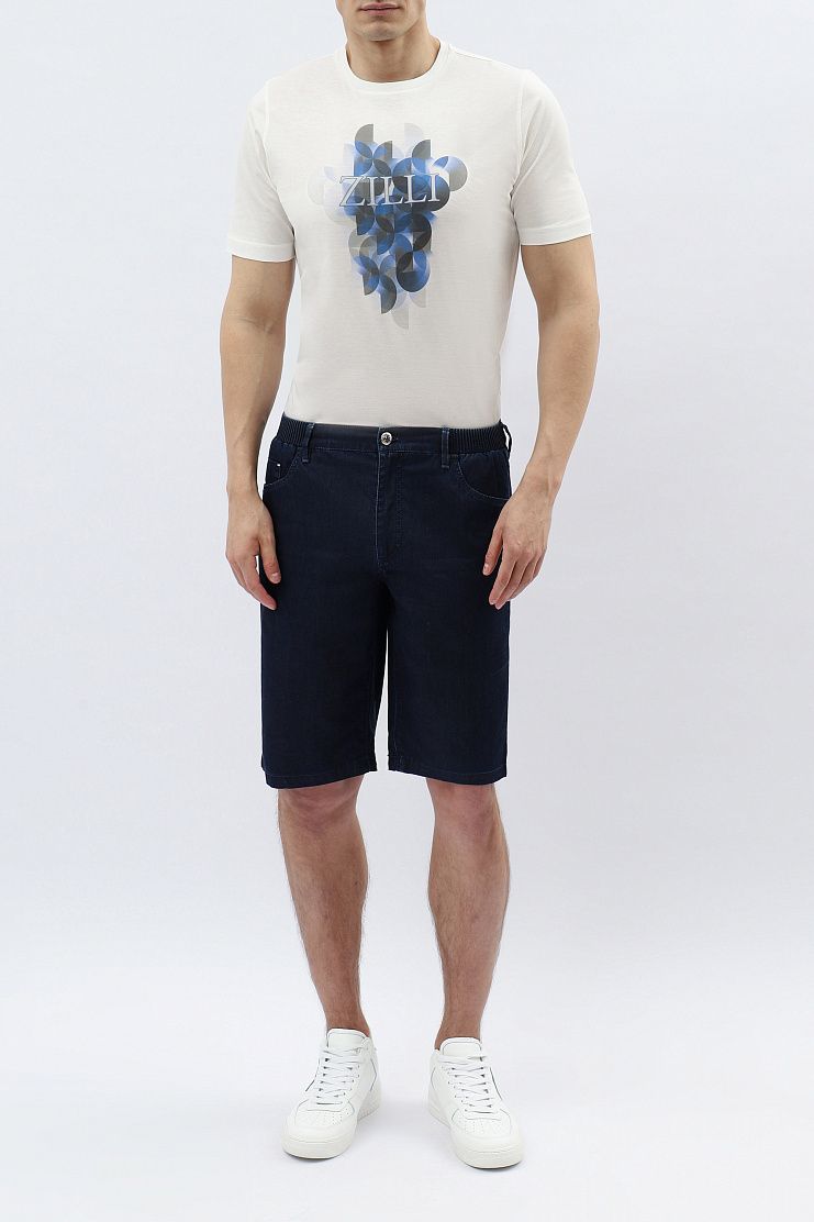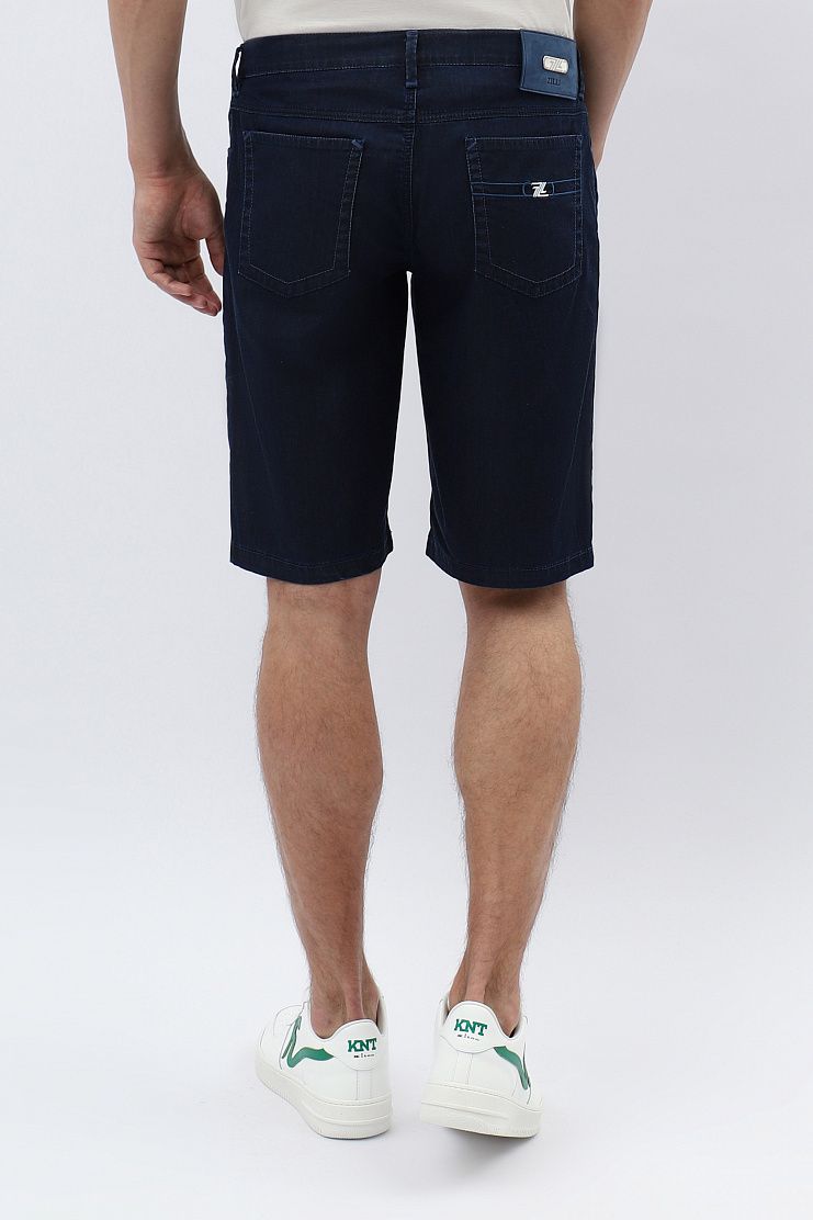 Шорты-бермуды с нашивкой и вышивкой в виде стилизованной двойной буквы Z на заднем кармане. Модель прямого кроя имеет эластичный пояс и застежку на молнию и металлическую пуговицу с изображением льва.