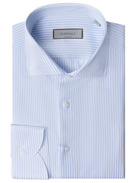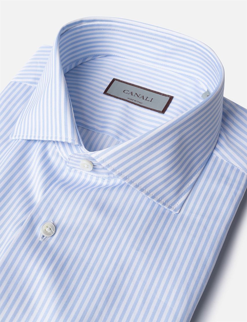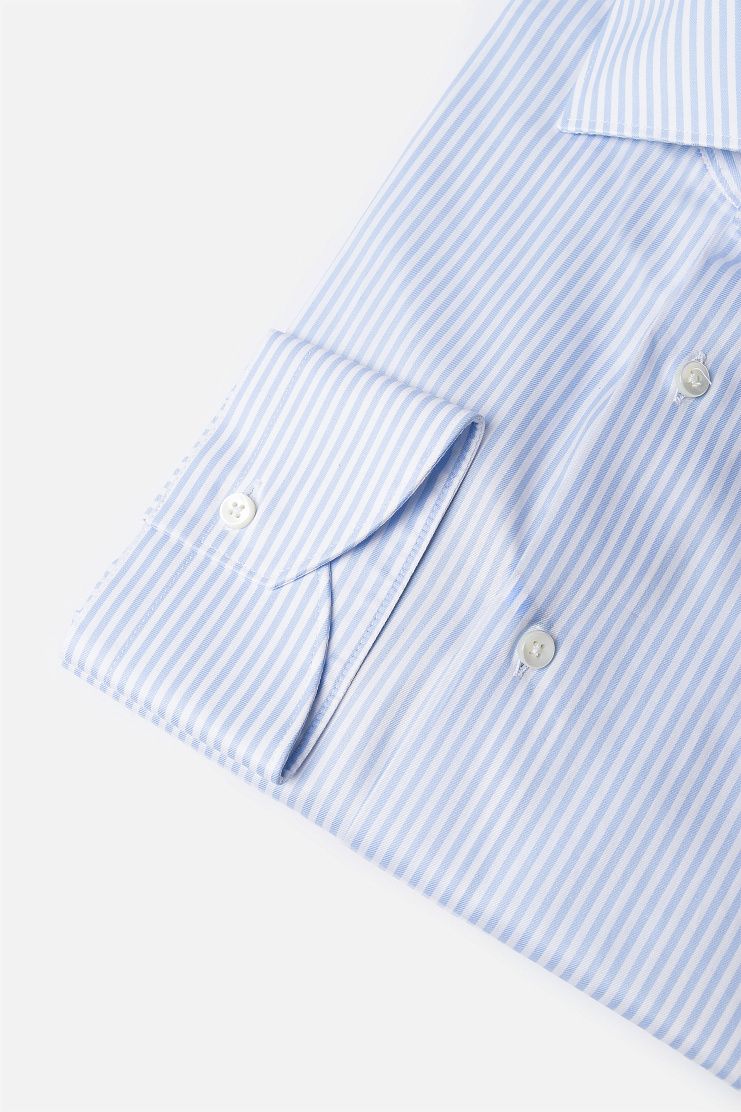 Сорочку кроя Regular fit выполнили из тонкого премиального хлопка в полоску. Модель с воротником акула дополнена закругленными манжетами и застежкой на перламутровые пуговицы. Универсальный вариант для делового гардероба.