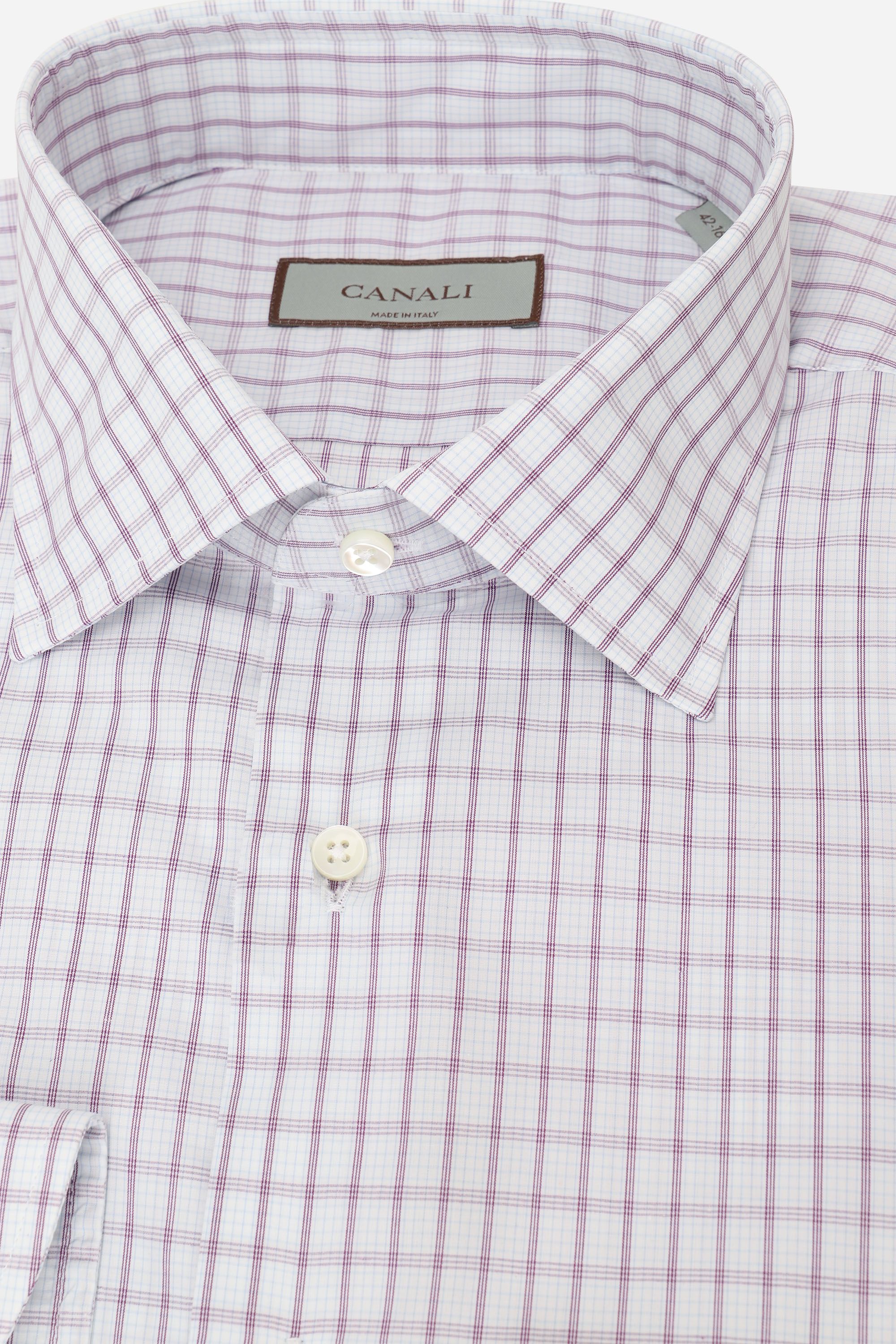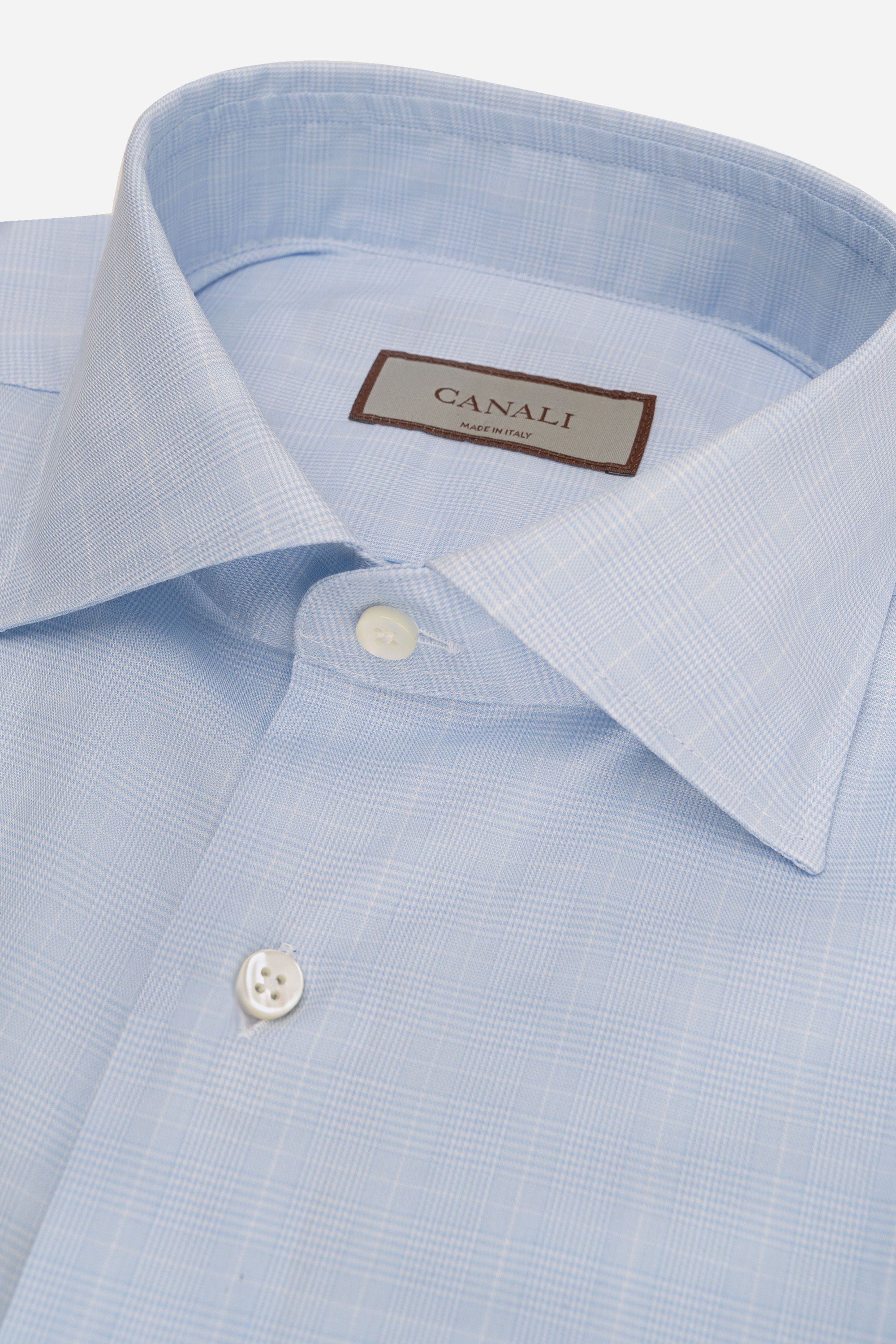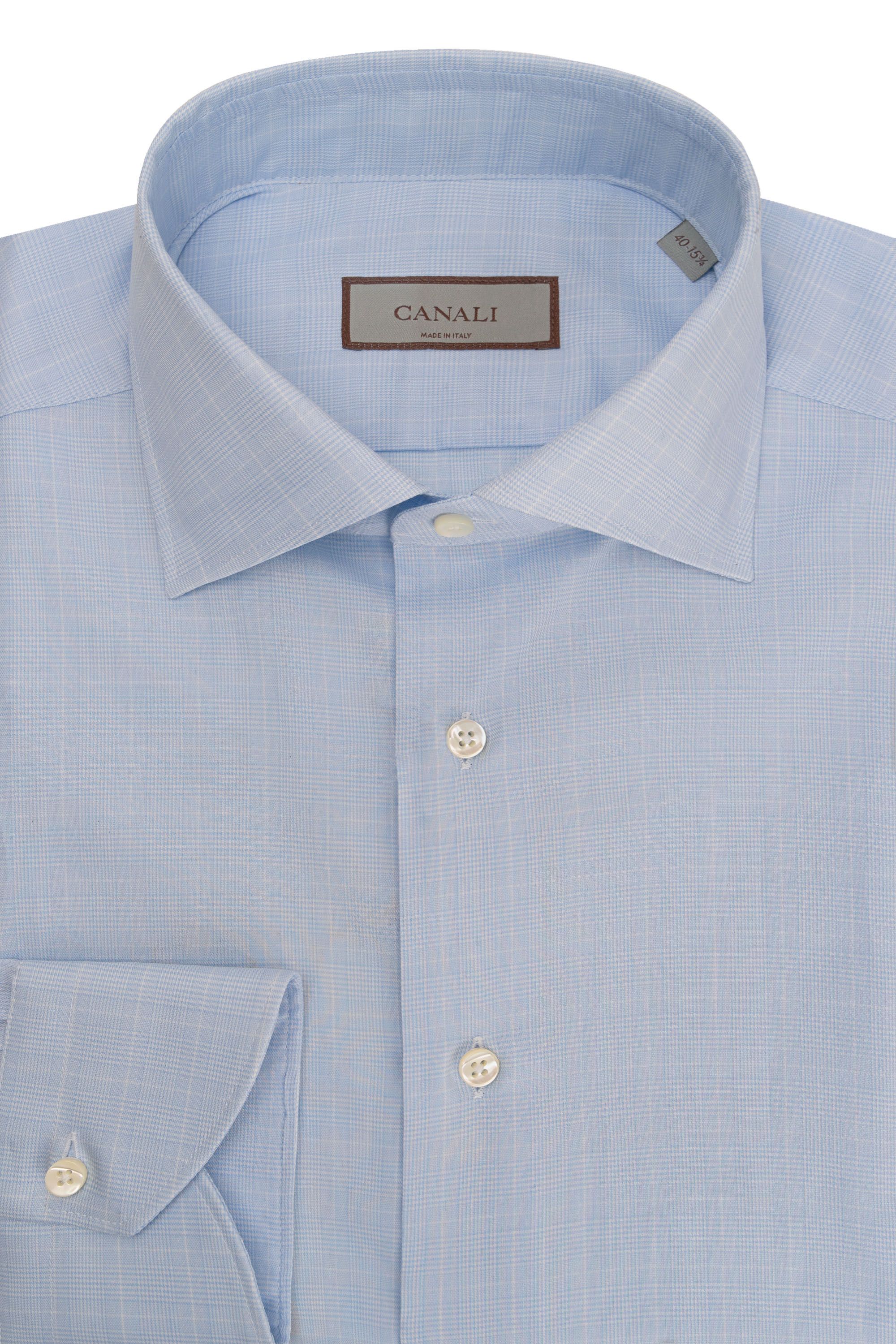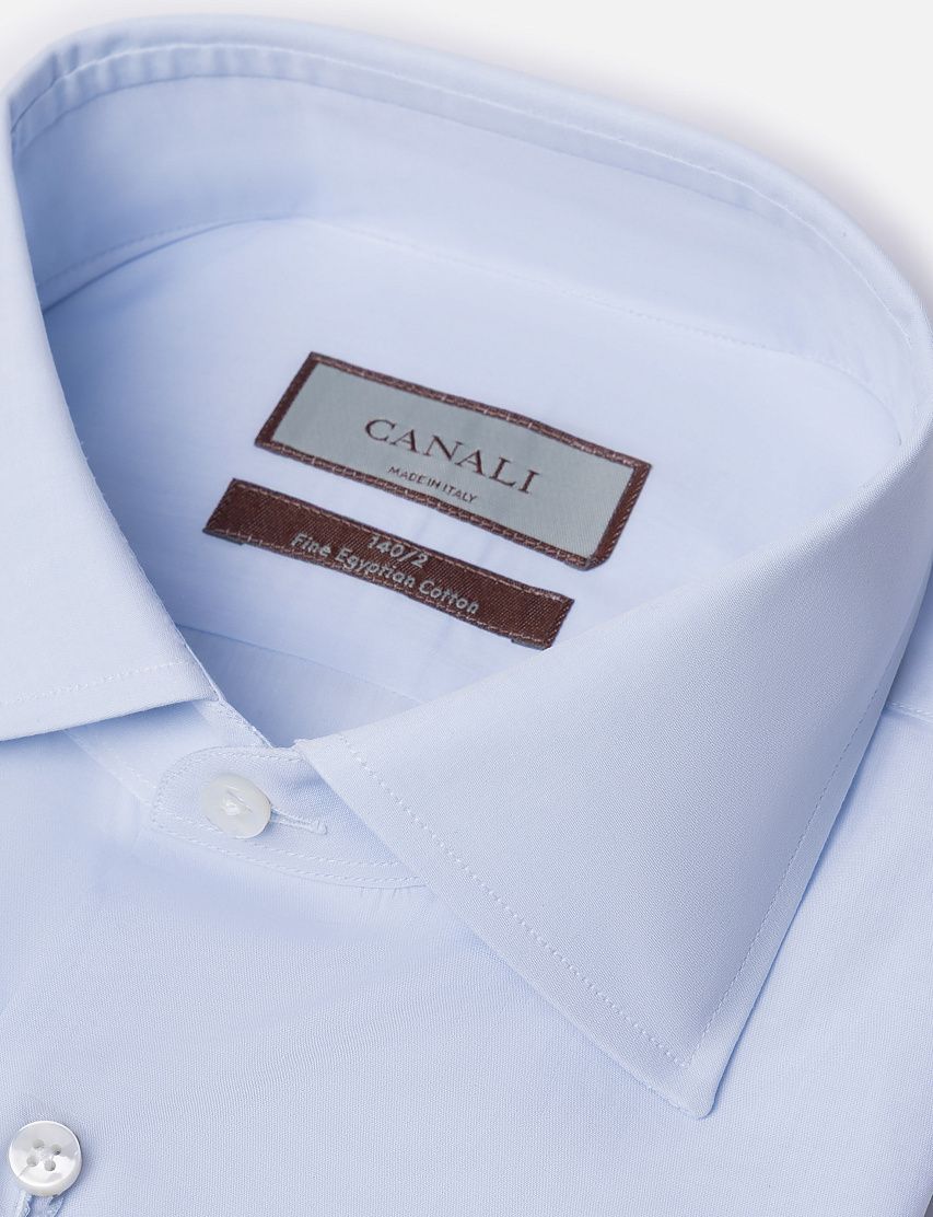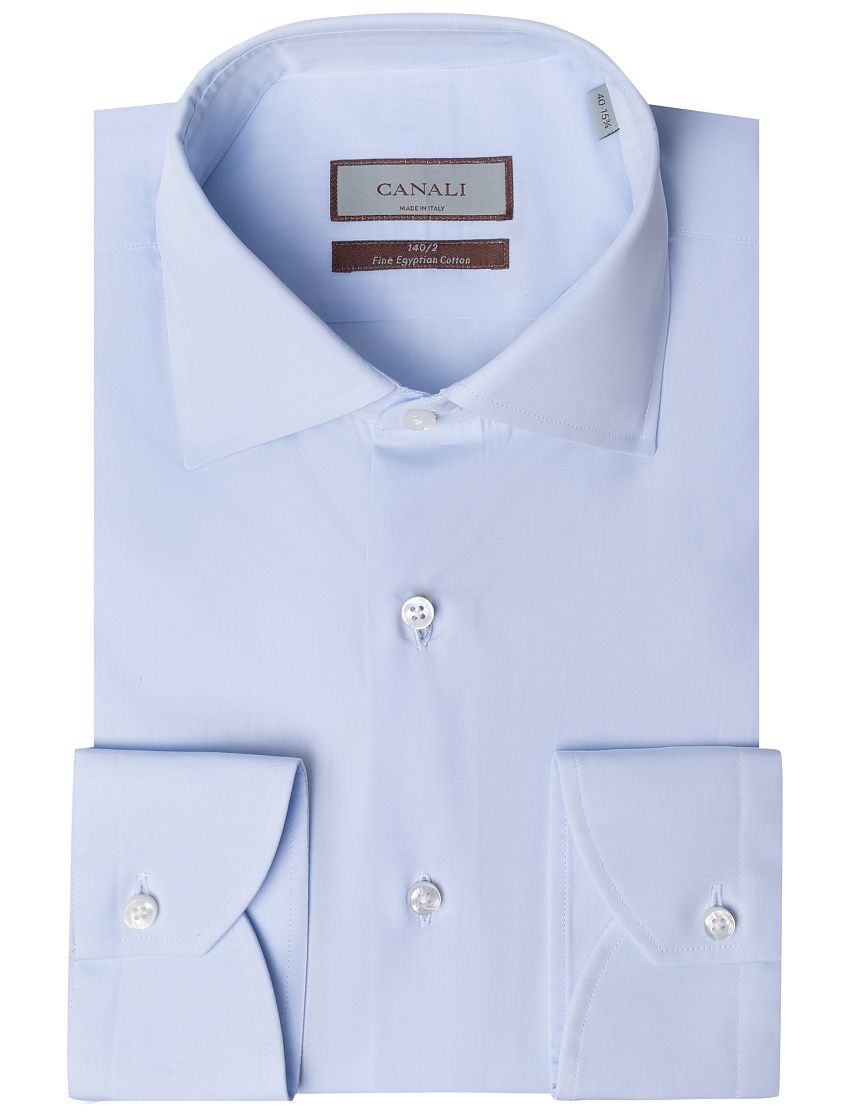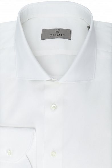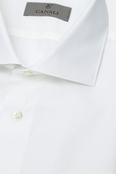 Классическую однотонную сорочку с воротником, подходящим для широкого галстука, выполнили из тонкого премиального хлопка. Модель дополнили закругленными манжетами и застежкой на перламутровые пуговицы. Вещь гармонично подстроится под любой костюм.