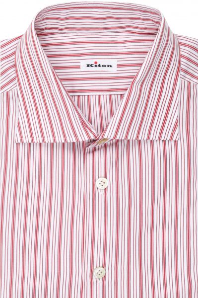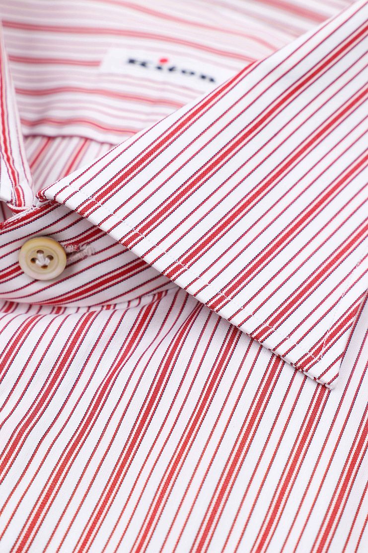 Хлопковая сорочка в вертикальную полоску. Модель классического кроя с отложным воротником и застежкой на пуговицы.