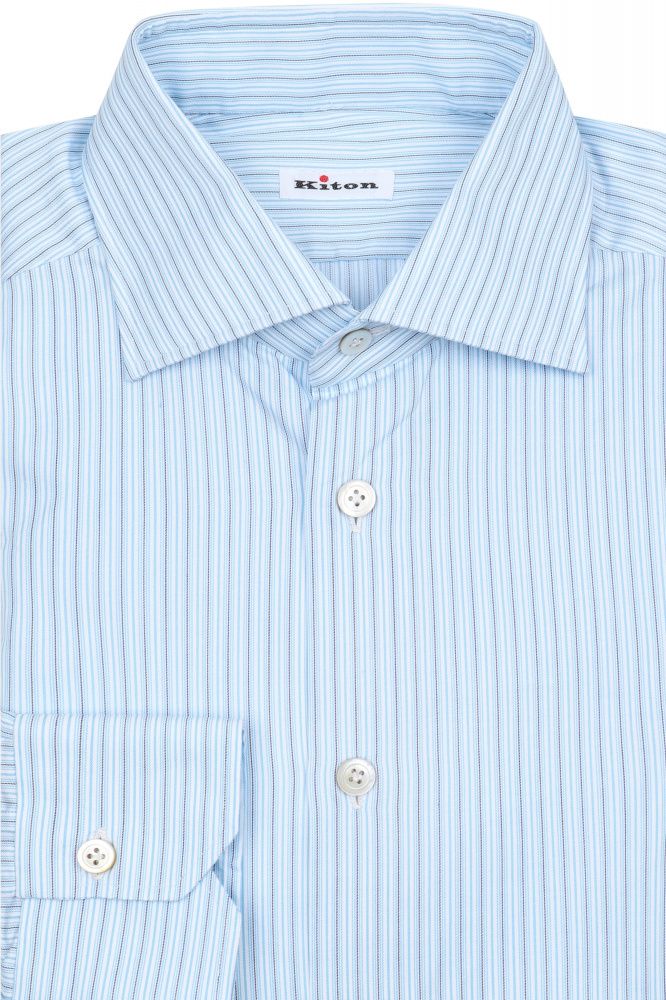 Сорочка в вертикальную полоску из чистого хлопка. Модель классического кроя, с отложным воротником.