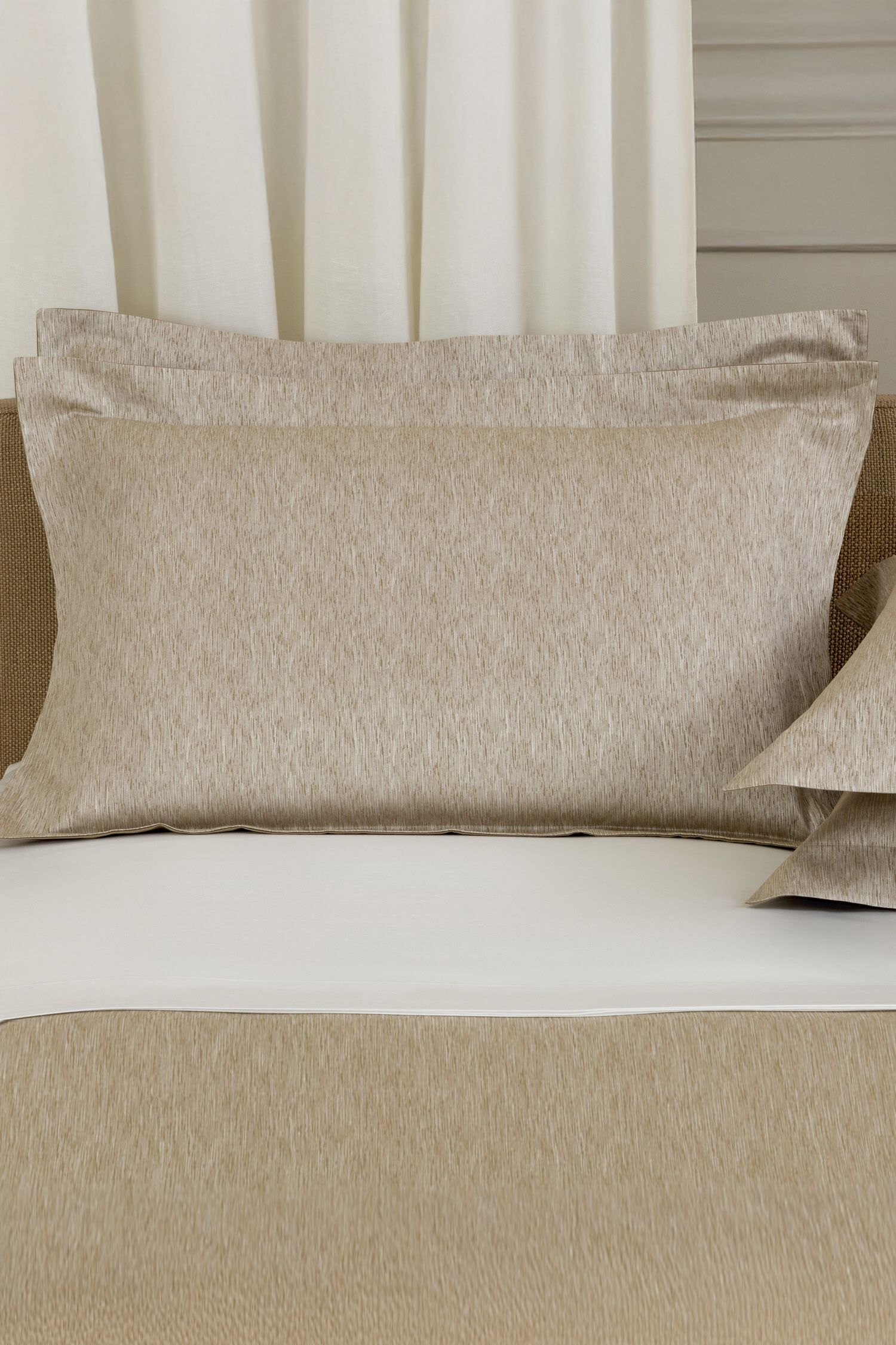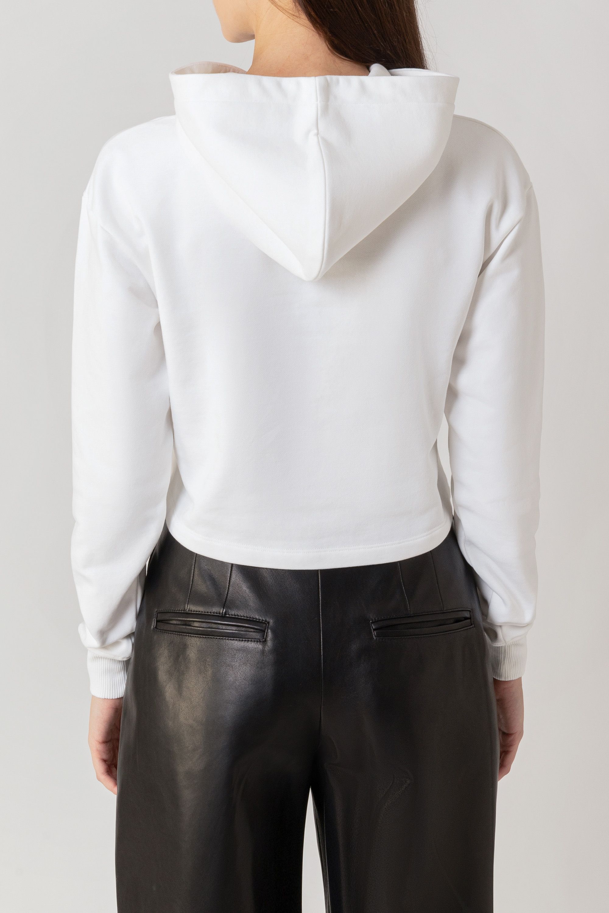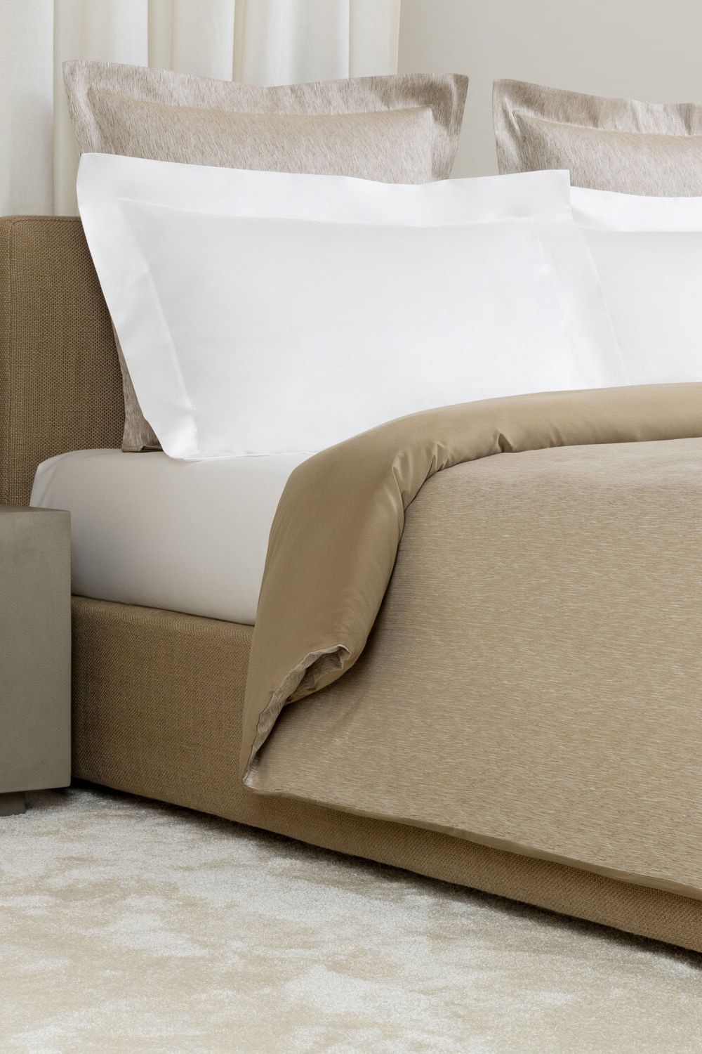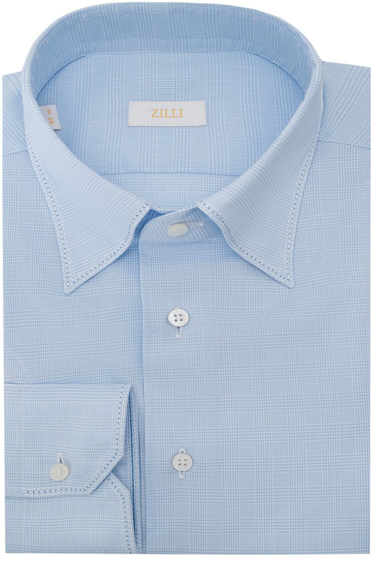 Сорочку сшили из мягкого хлопка с еле заметным клетчатым узором. Модель дополнена манжетами со срезанным углом и застегивается на перламутровые пуговицы.