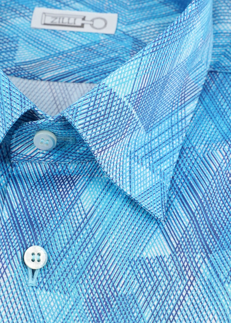 Сорочка из хлопка с геометрическим принтом. Модель классическогоо кроя с застежкой на пуговицы.
