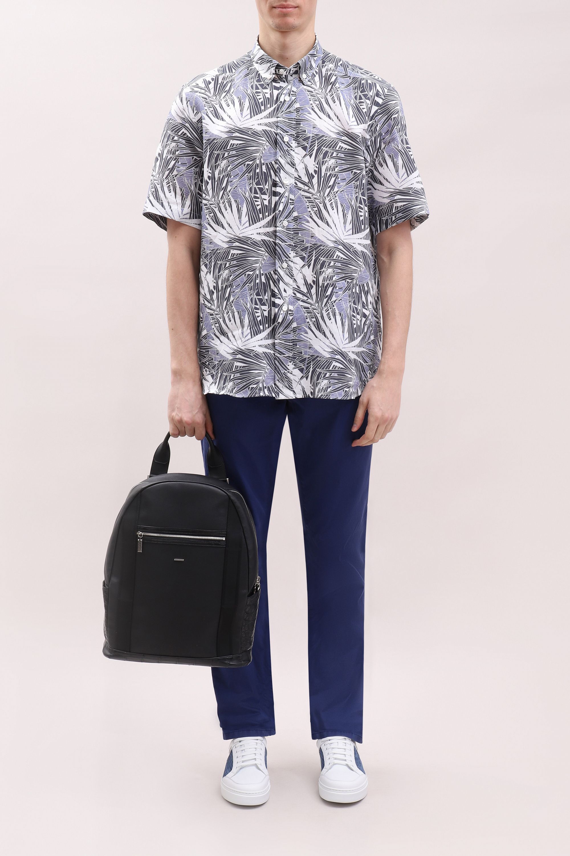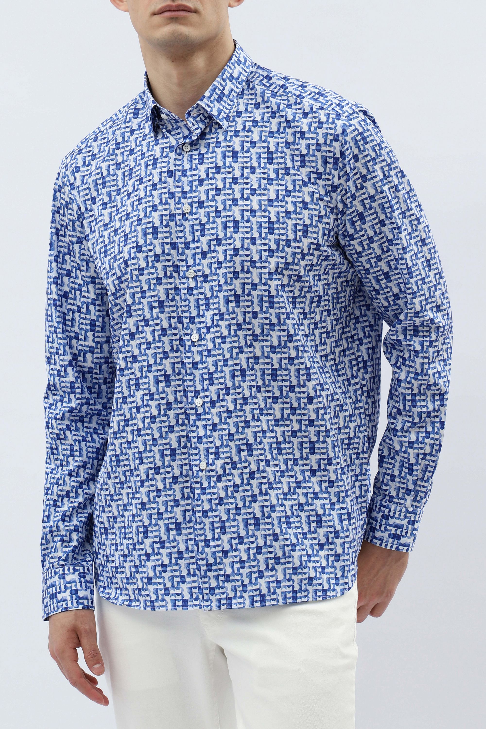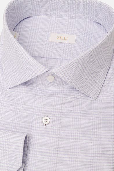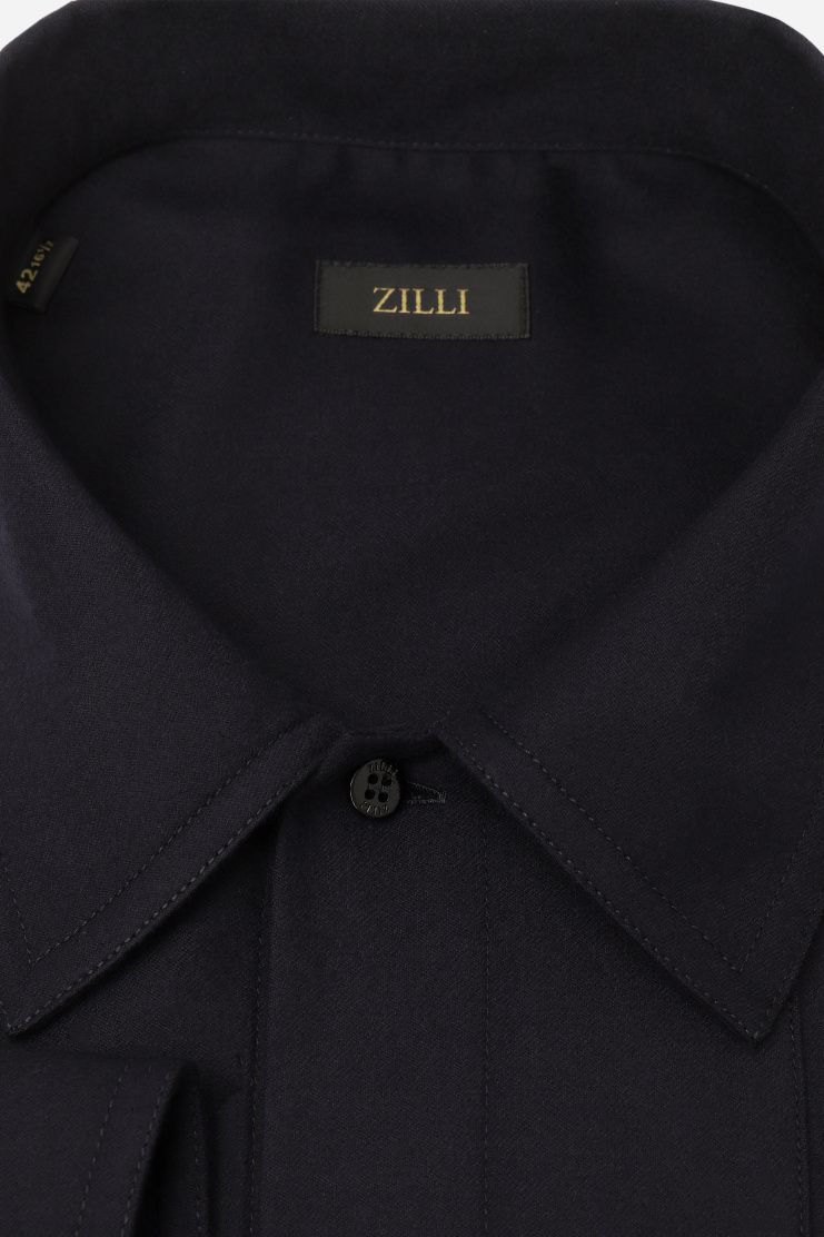 Сорочку с отложным воротником сшили из мягкой шерсти с добавлением шелка. Модель с прямоугольными манжетами застегивается на брендированные пуговицы. Такая сорочка станет отличным приобретением для базового гардероба.