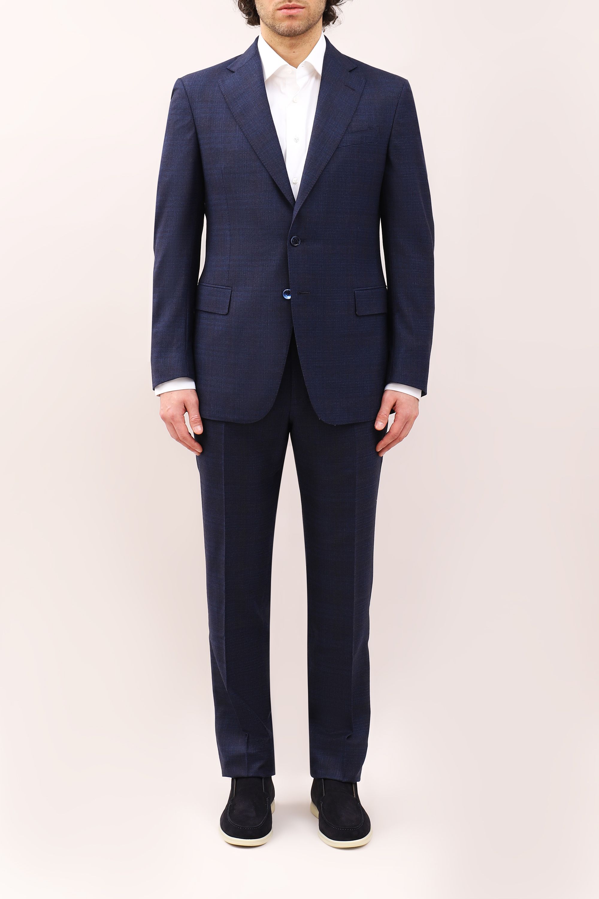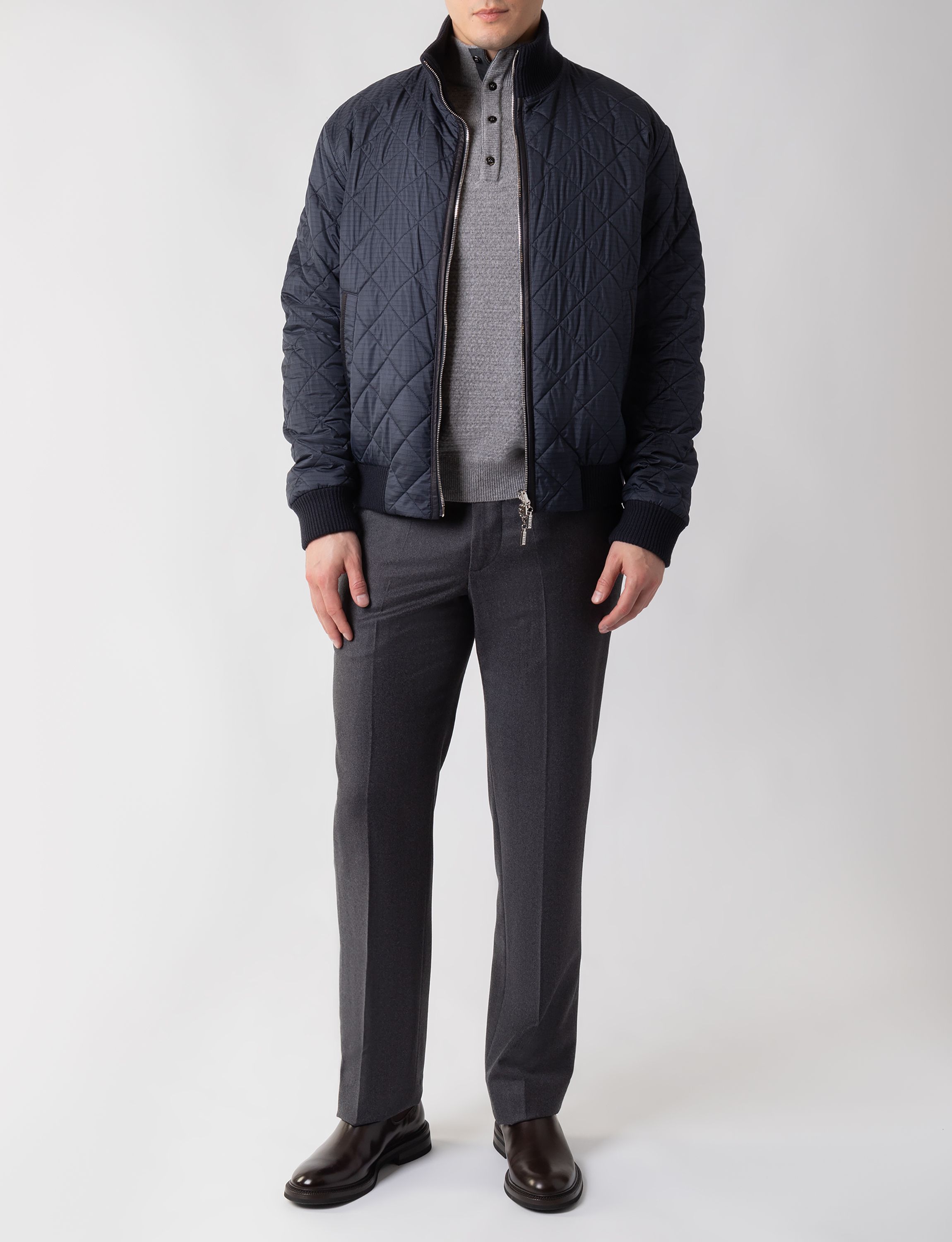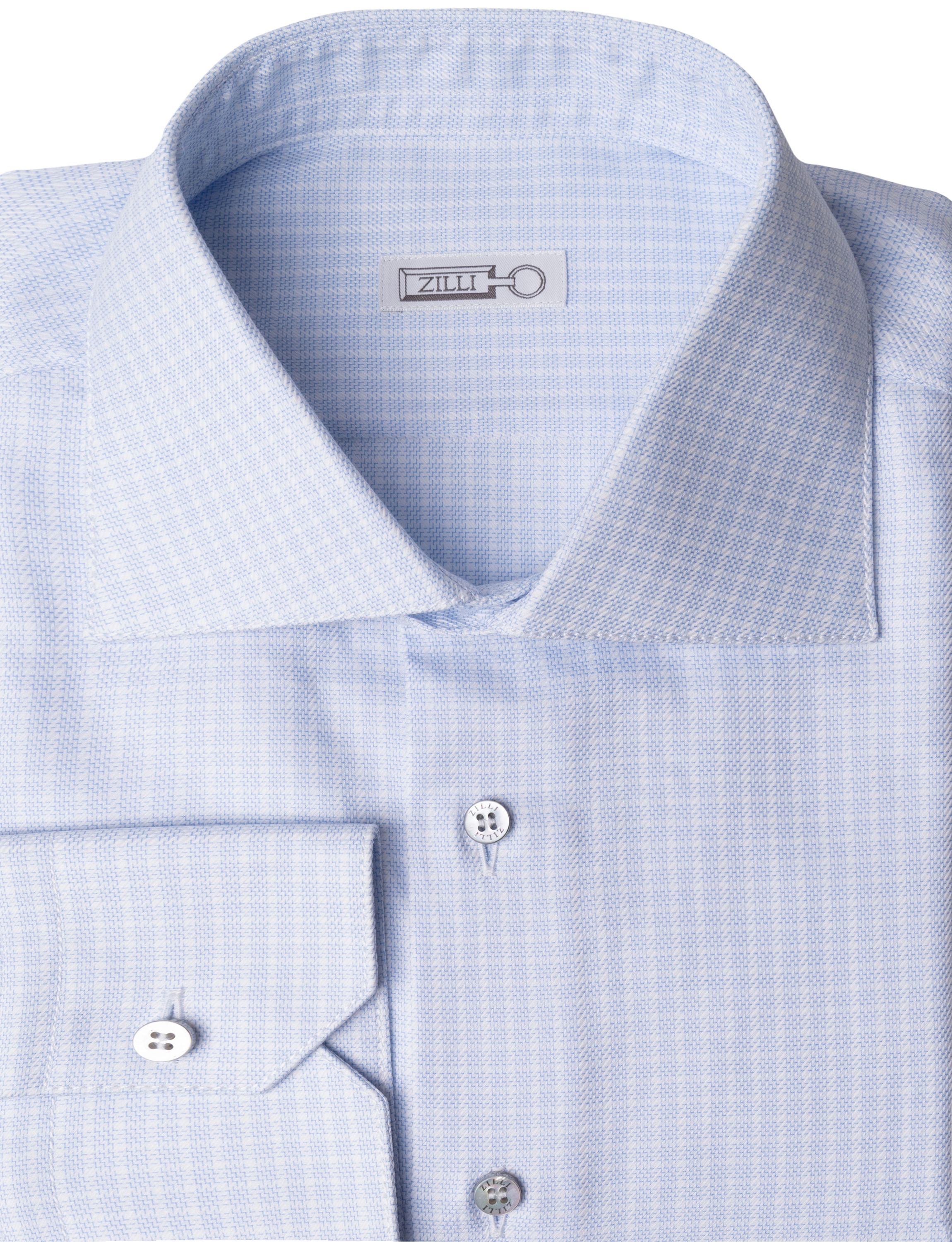 Сорочку с отложным воротником сшили из мягкой шерсти с добавлением шелка. Модель с прямоугольными манжетами застегивается на брендированные пуговицы. Такая сорочка станет отличным приобретением для базового гардероба.