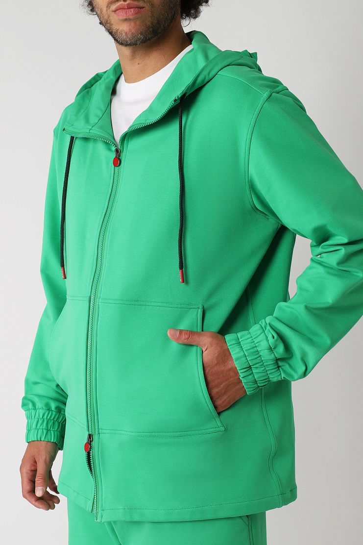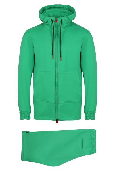 Спортивный костюм выполнен на основе натурального хлопка. Благодаря эластичным манжетам и поясу шорт на кулиске модель отлично садится по фигуре и не сковывает движений. Яркие акценты в виде узнаваемой точки-бегунка Kiton на молнии и наконечников на шнурках с лазерной гравировкой логотипа завершают фирменный стиль.