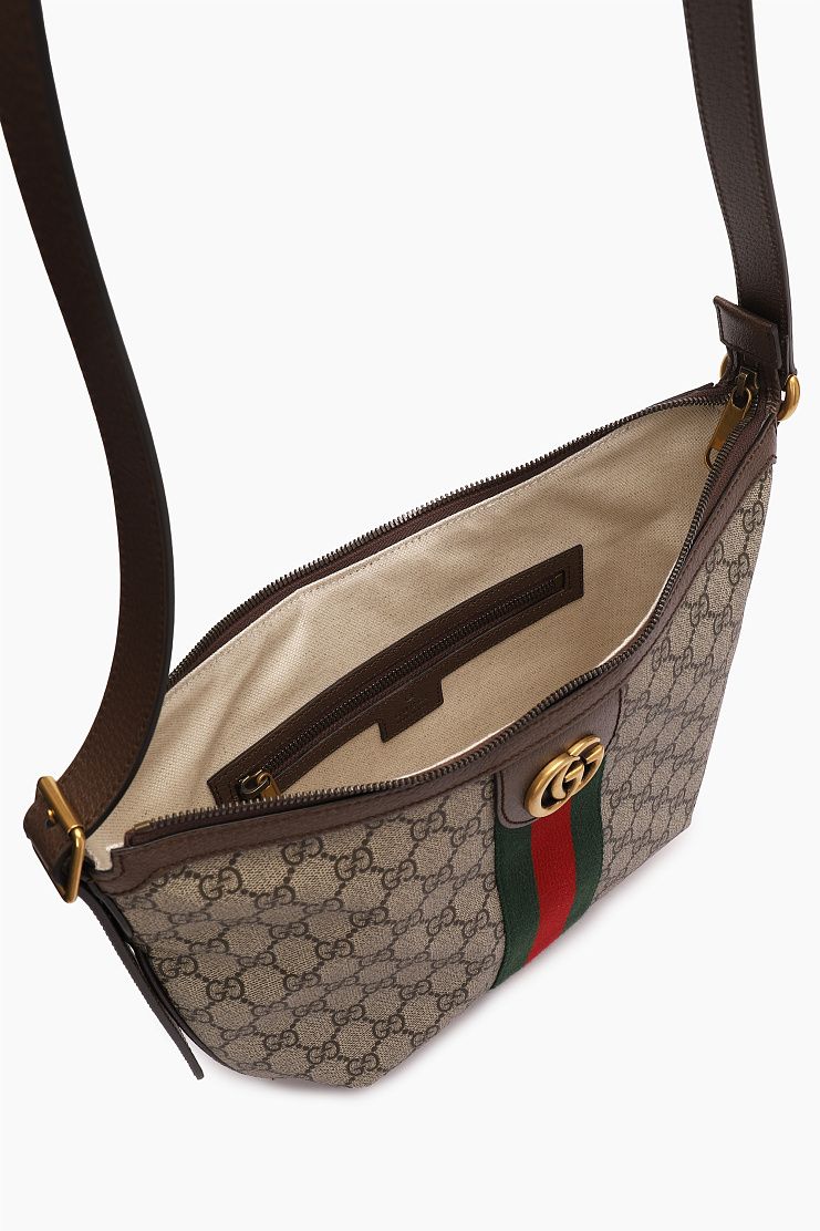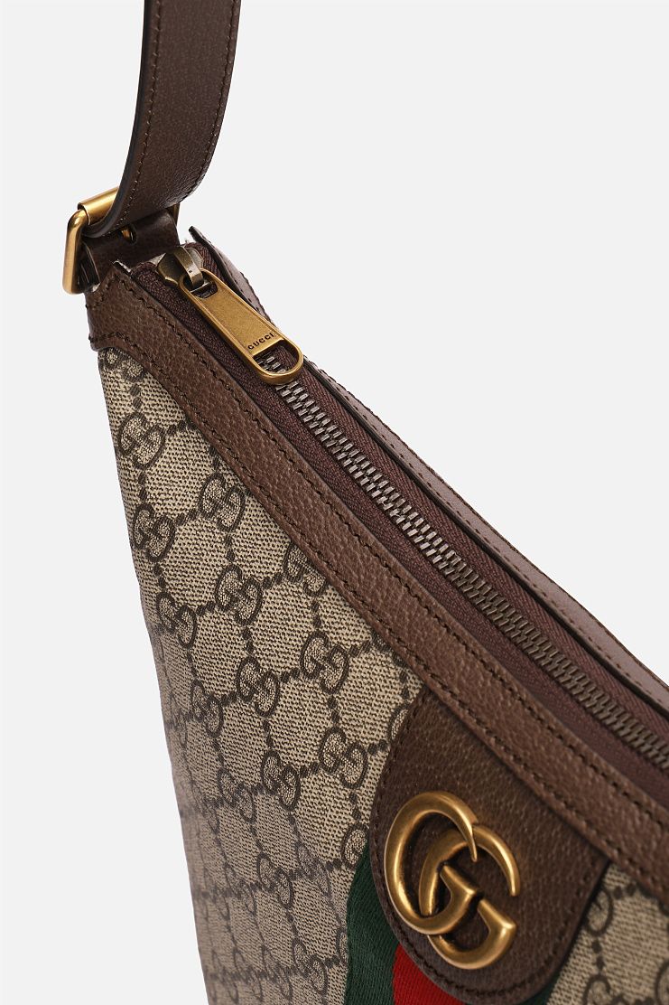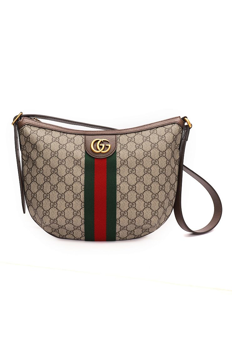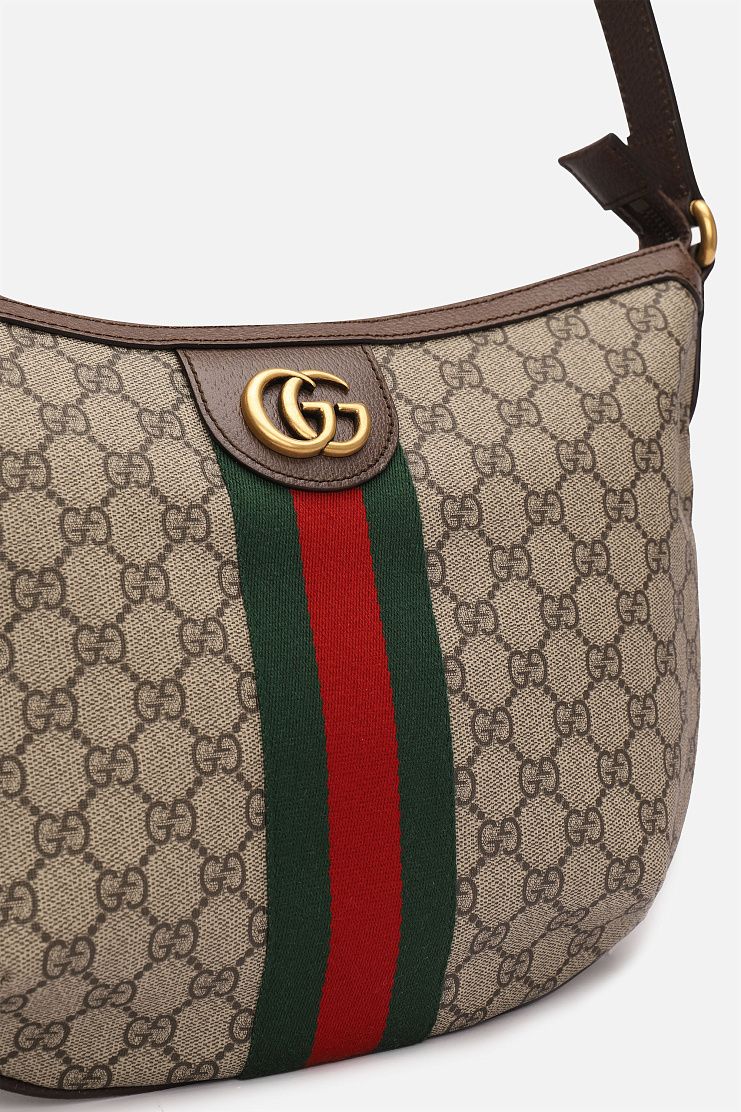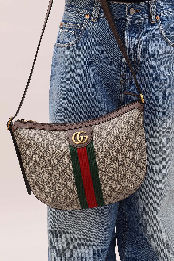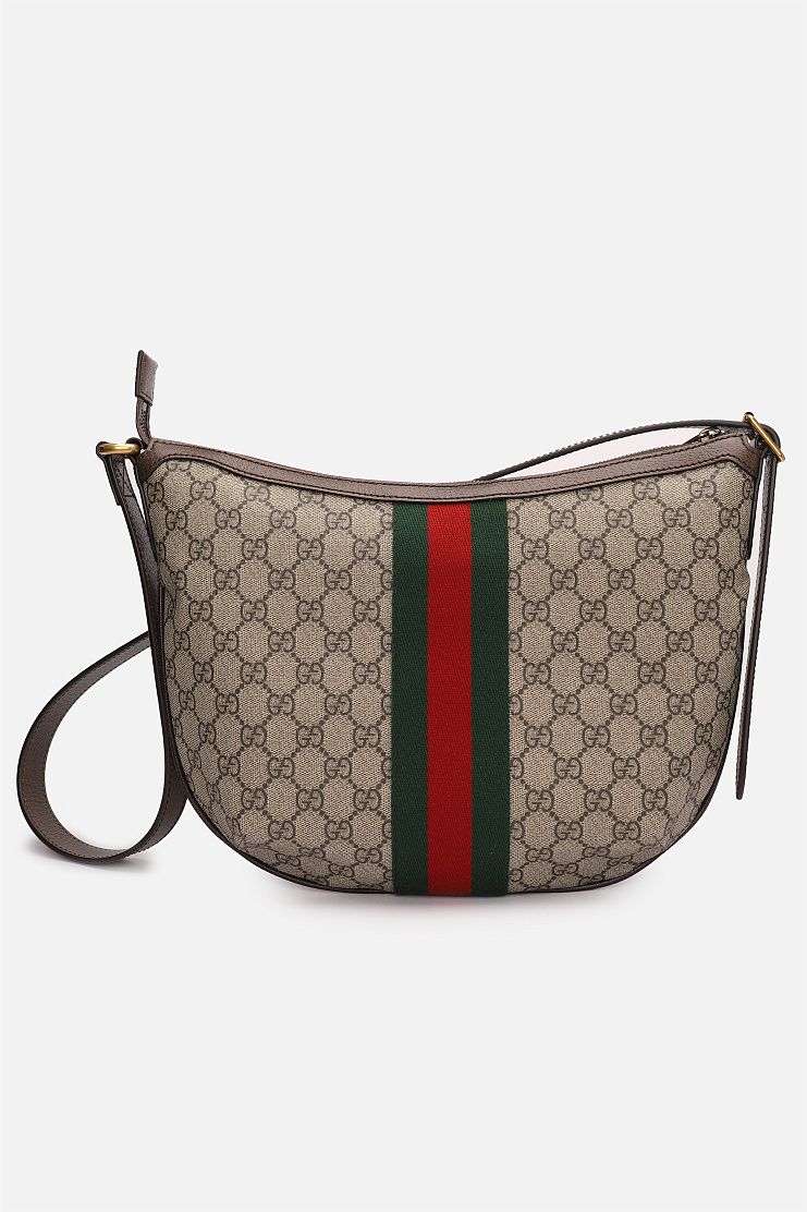Сумка в форме полумесяца из текстиля и кожи с узнаваемым принтом, культовой красно-зеленой полоской и металлическим логотипом в виде двух перлетающихся букв G имеет уникальное очарование модели через плечо, популярной в конце 50-х годов. Аксессуар имеет основное отделение на молнии, внутренний карман и регулируемый плечевой ремень.