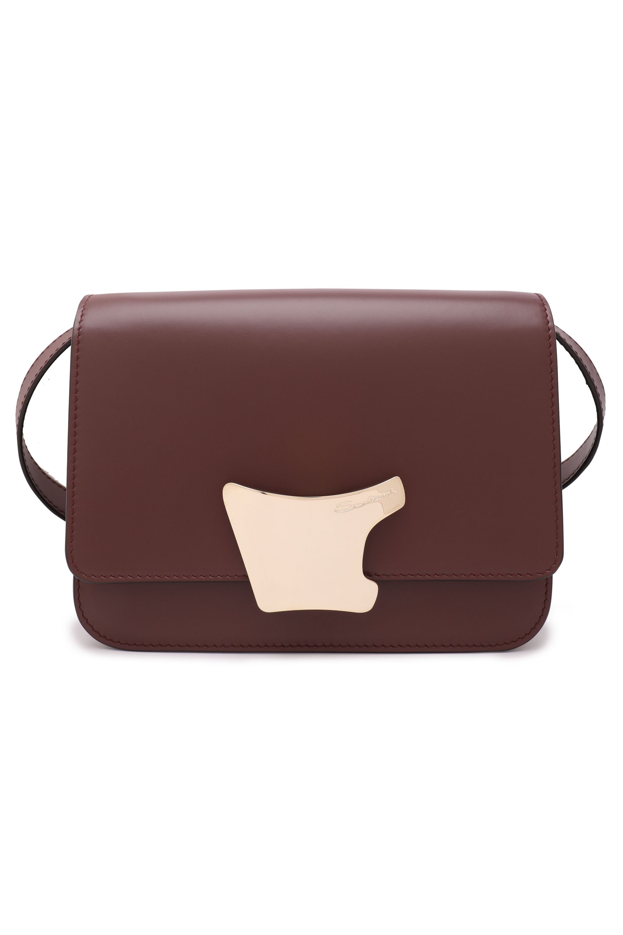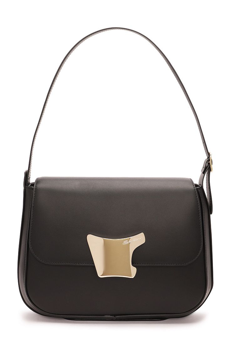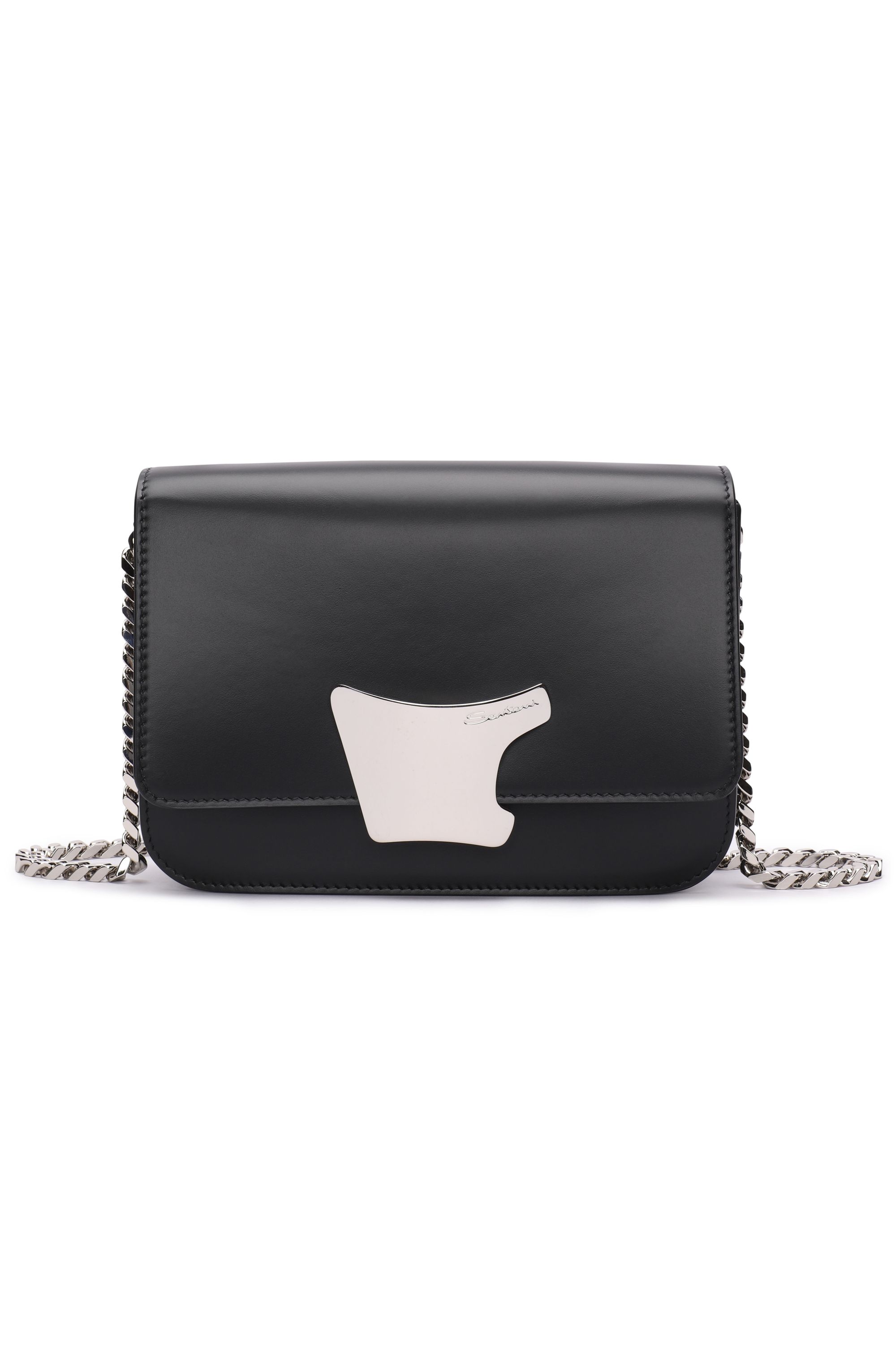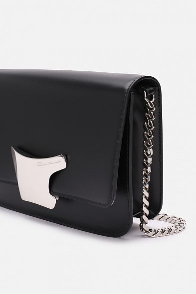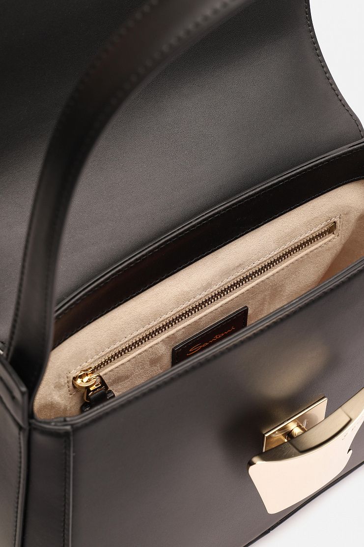 Кожаная сумка, украшенная элегантной металлической интерпретацией культовой двойной пряжки с выгравированным логотипом Santoni. Модель имеет основное отделение с клапаном на магнитной застежке, внутренний карман на молнии и регулируемый ремень.