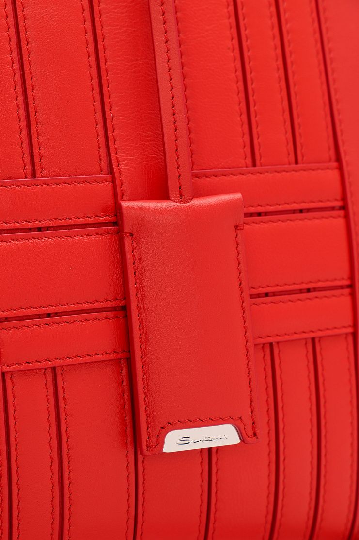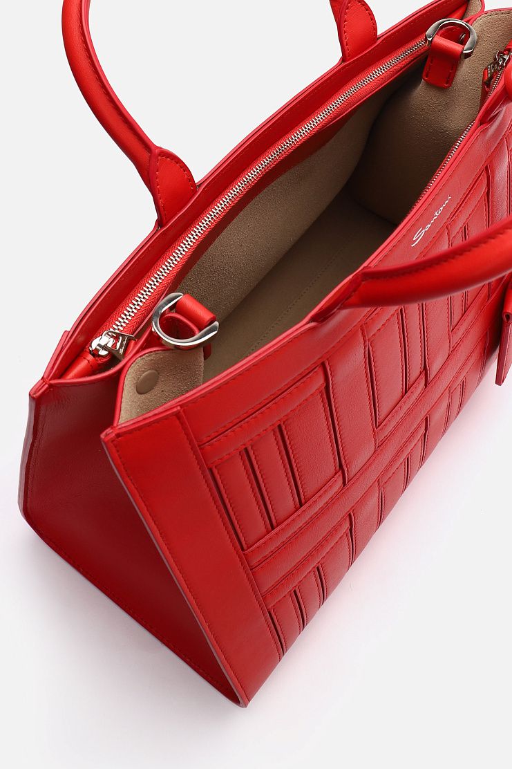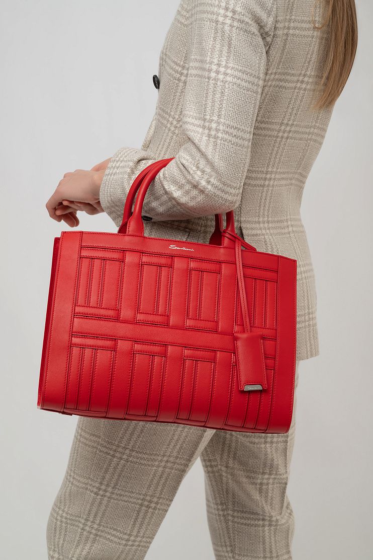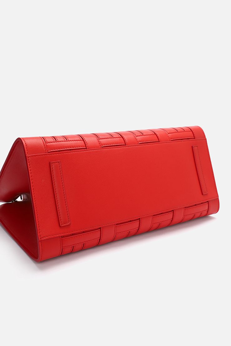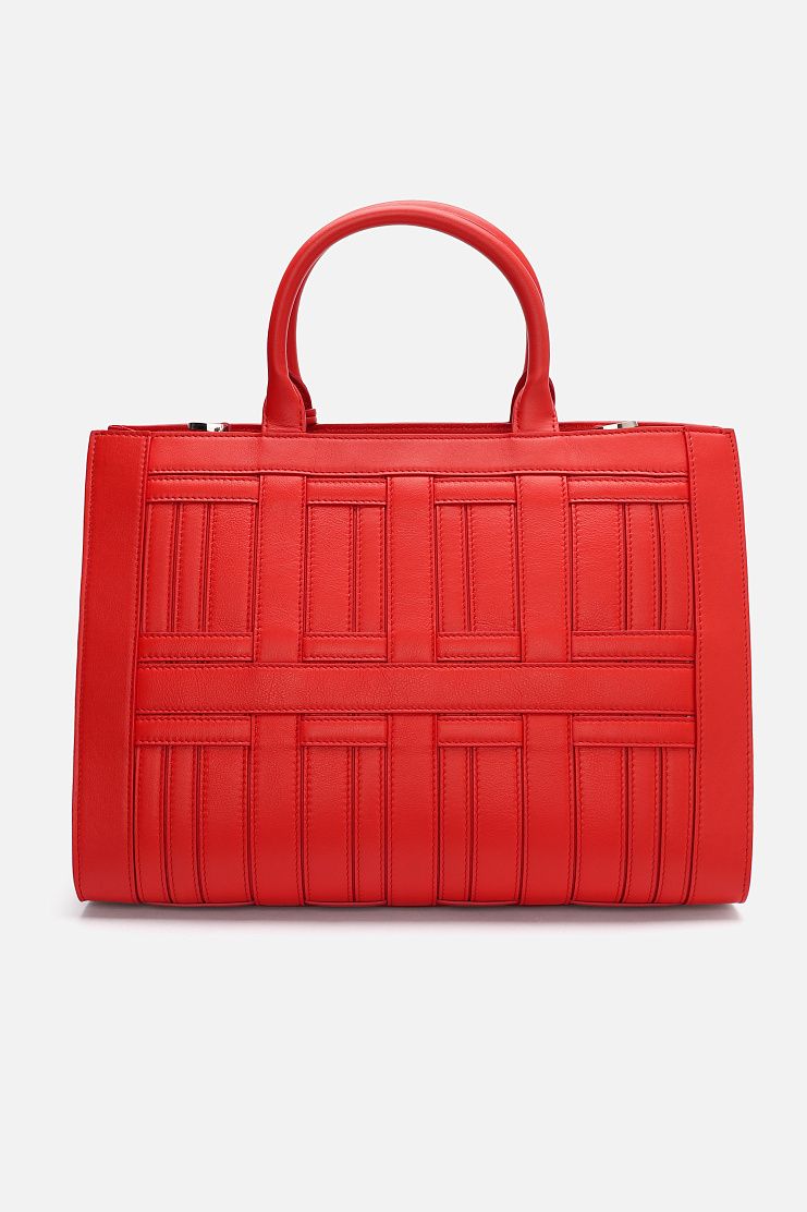 Для создания сумки выбрали матовую телячью кожу, из полосок которой сформировали плетеный узор Beyond. Модель дополнена двумя короткими ручками, съемным плечевым ремнем и брелоком. Внутри — карманы на молниях и кнопки для регулирования объема.
