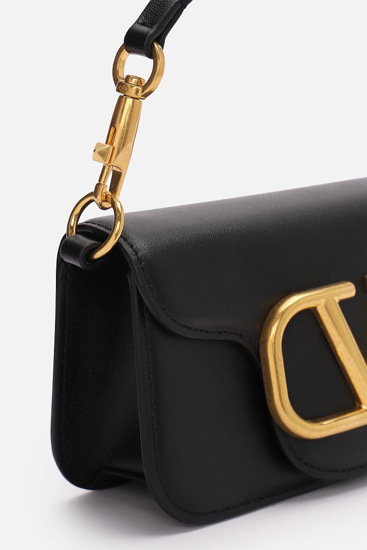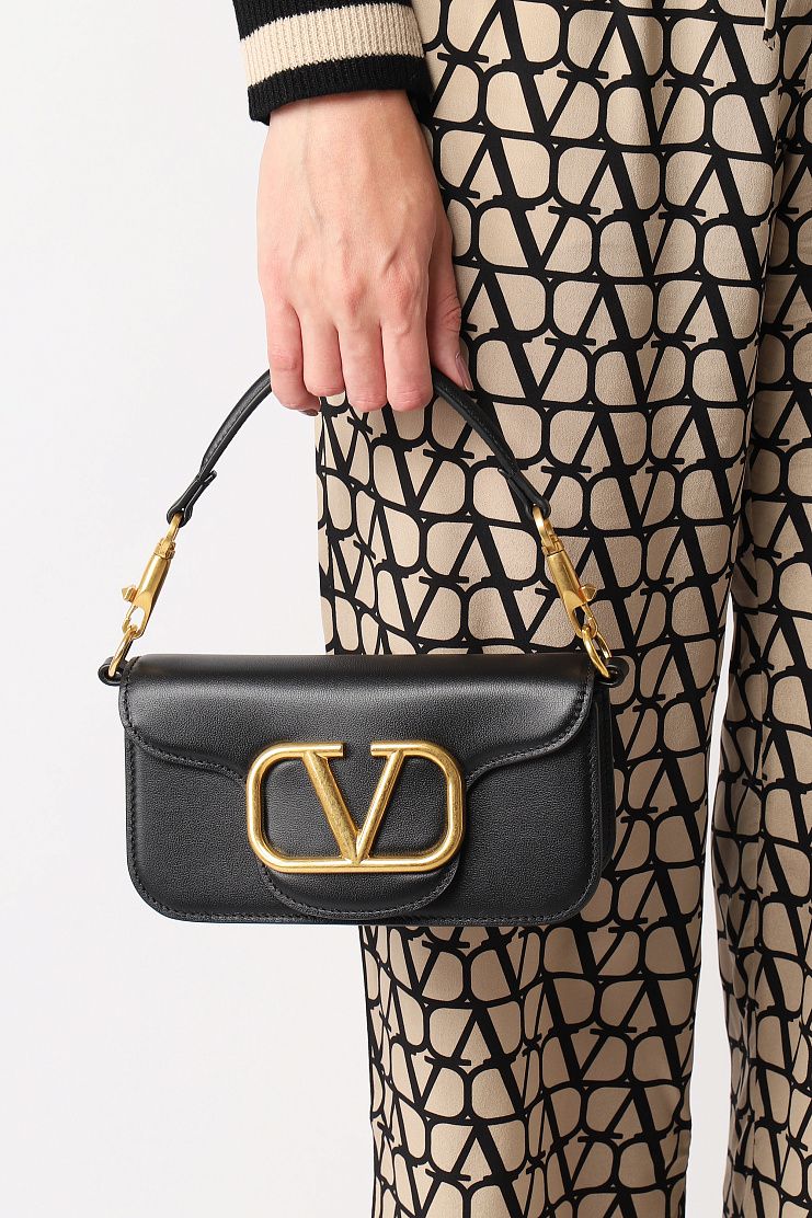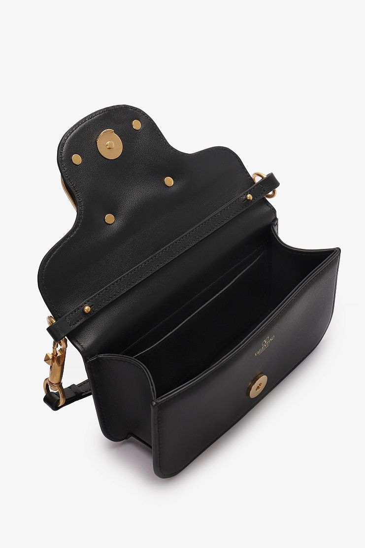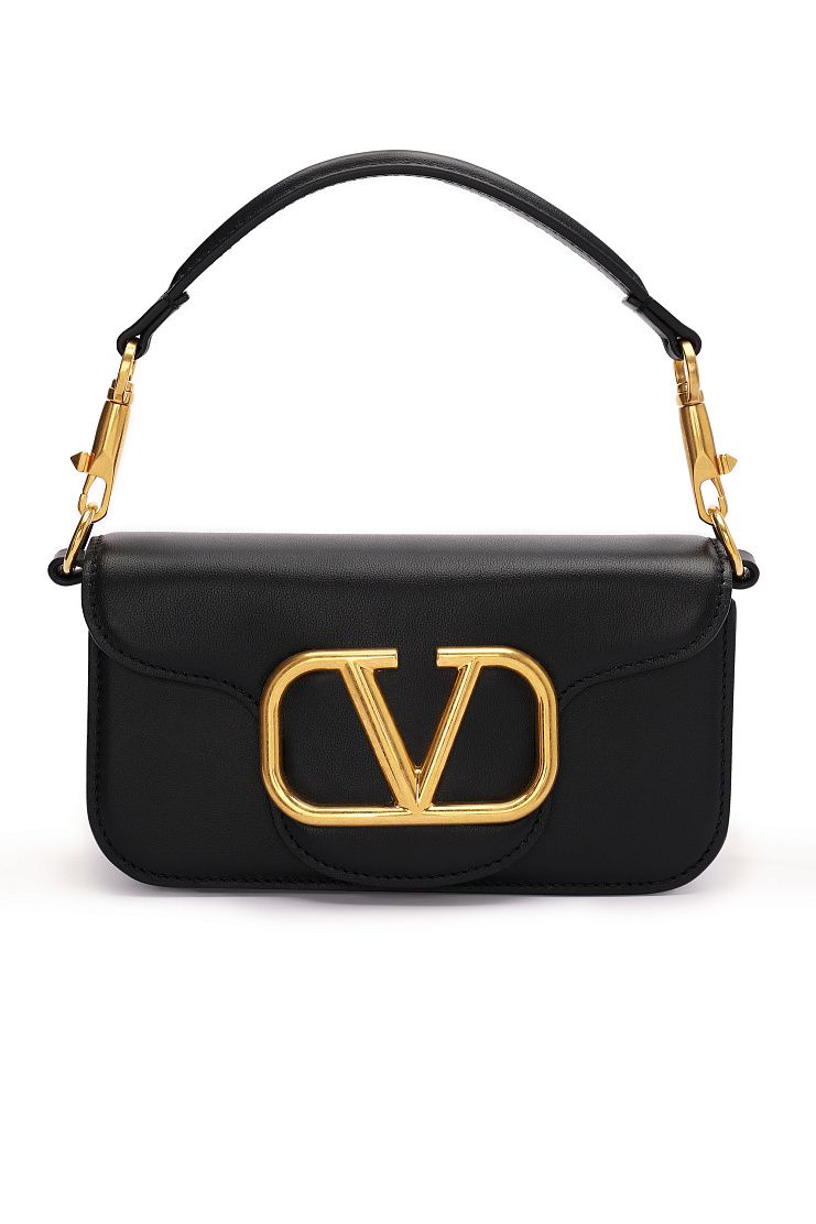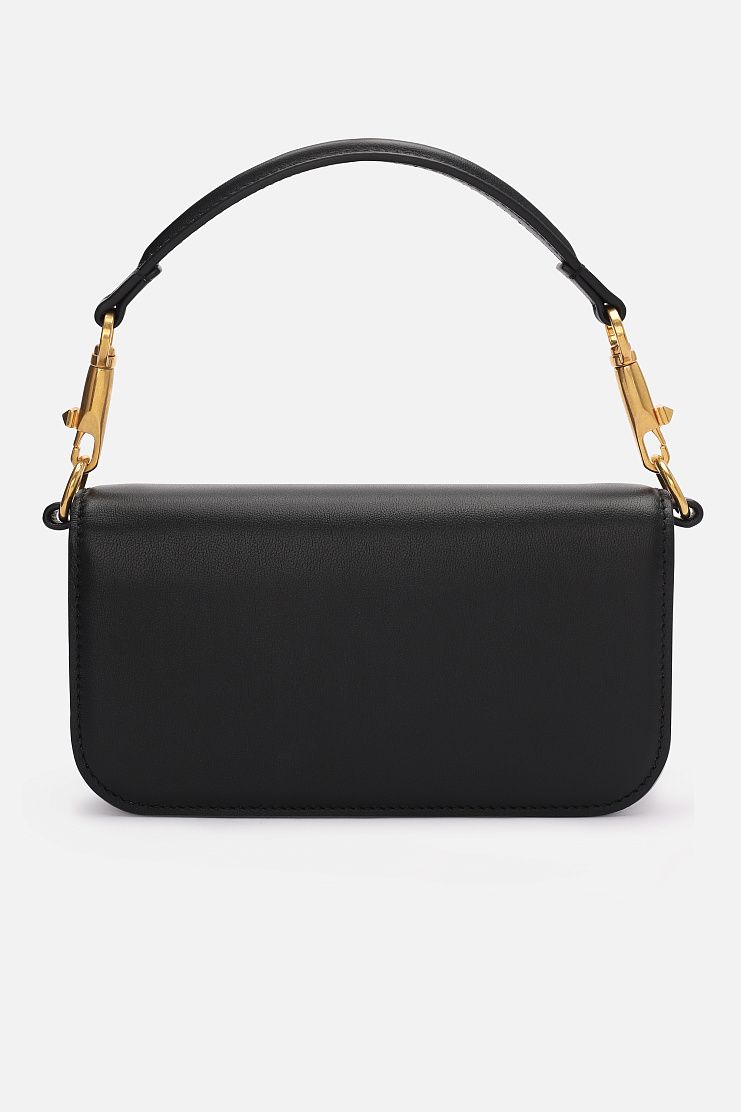 Черная прямоугольная сумочка выполнена из телячьей кожи. Дополнена акцентным латунным золотистым логотипом. Кожаную ручку можно отстегнуть. Идеальная сумка как для повседневных образов, так и для особого случая.