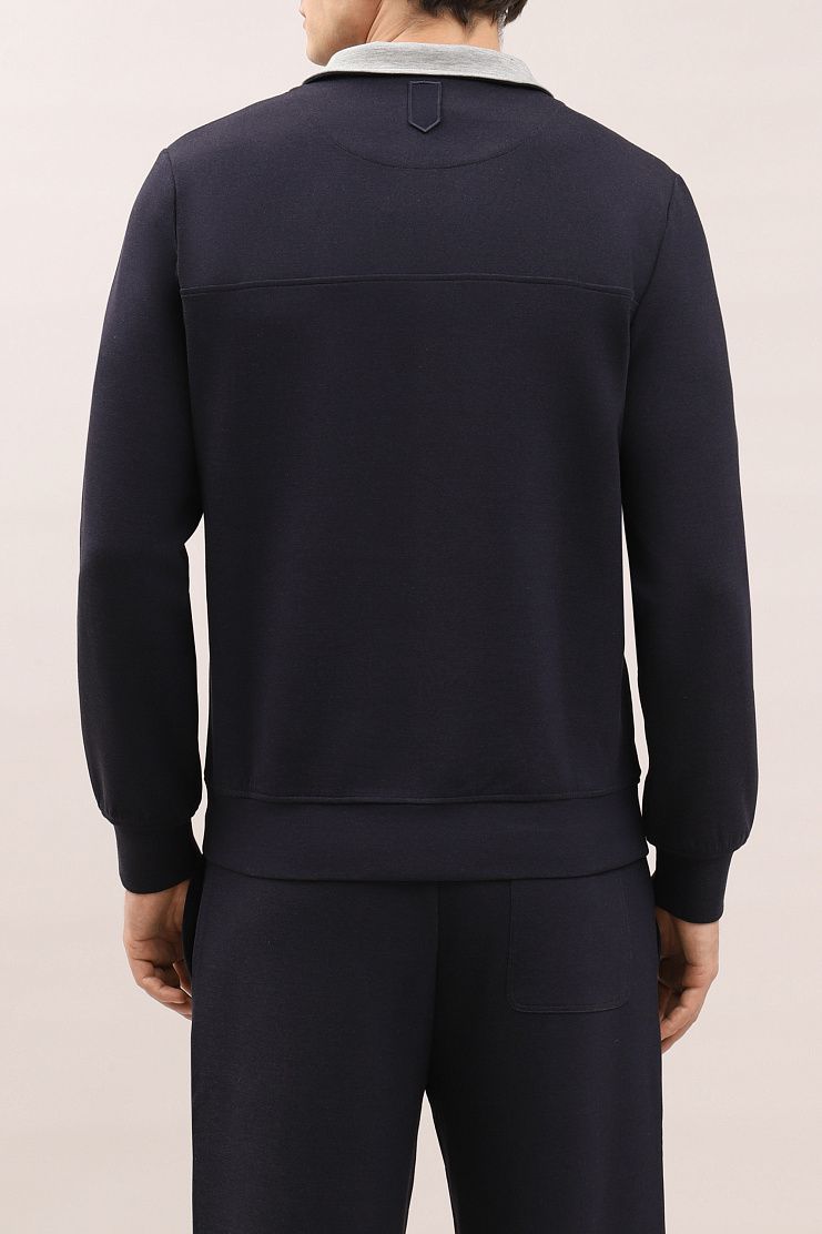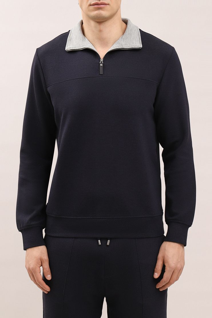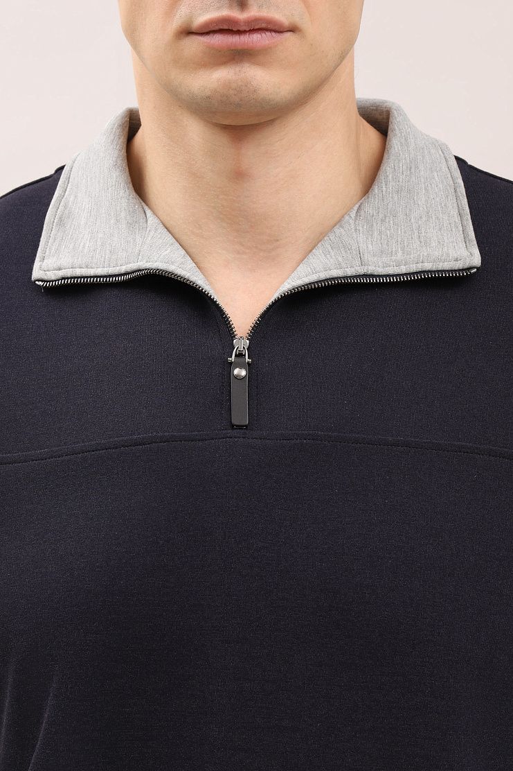 Толстовка соединила в себе спортивный и повседневный стиль. Модель свободного кроя имеет воротник-стойку на молнии серого оттенка с внутренней стороны. Дополните изделие спортивными брюками и Вы получите комфортный костюм для прогулок и отдыха в стиле sport-casual.